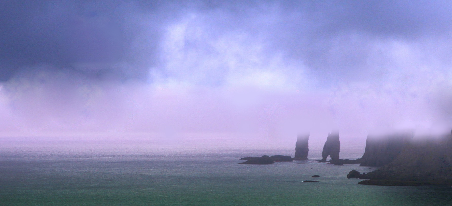 Blågrå våt morgen Grønngrå sjø Grårosa himmel Forøvrig blyblått