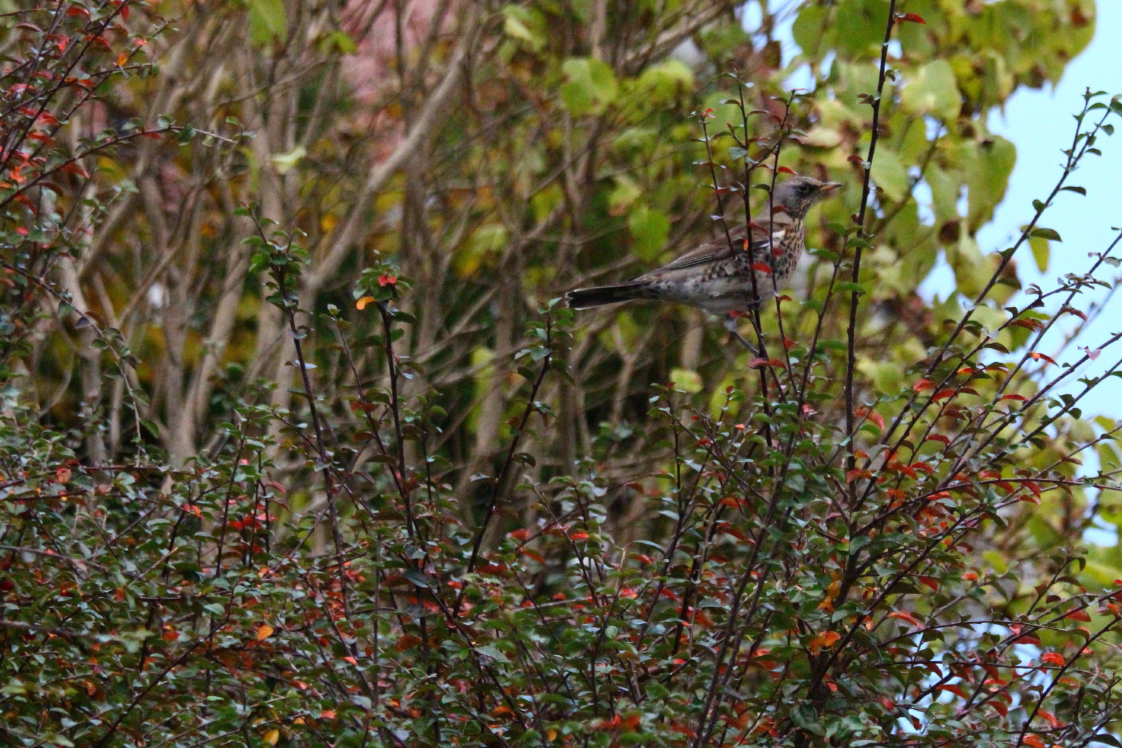 Gråtrost ((Turdus pilaris)) i cotoneasteren