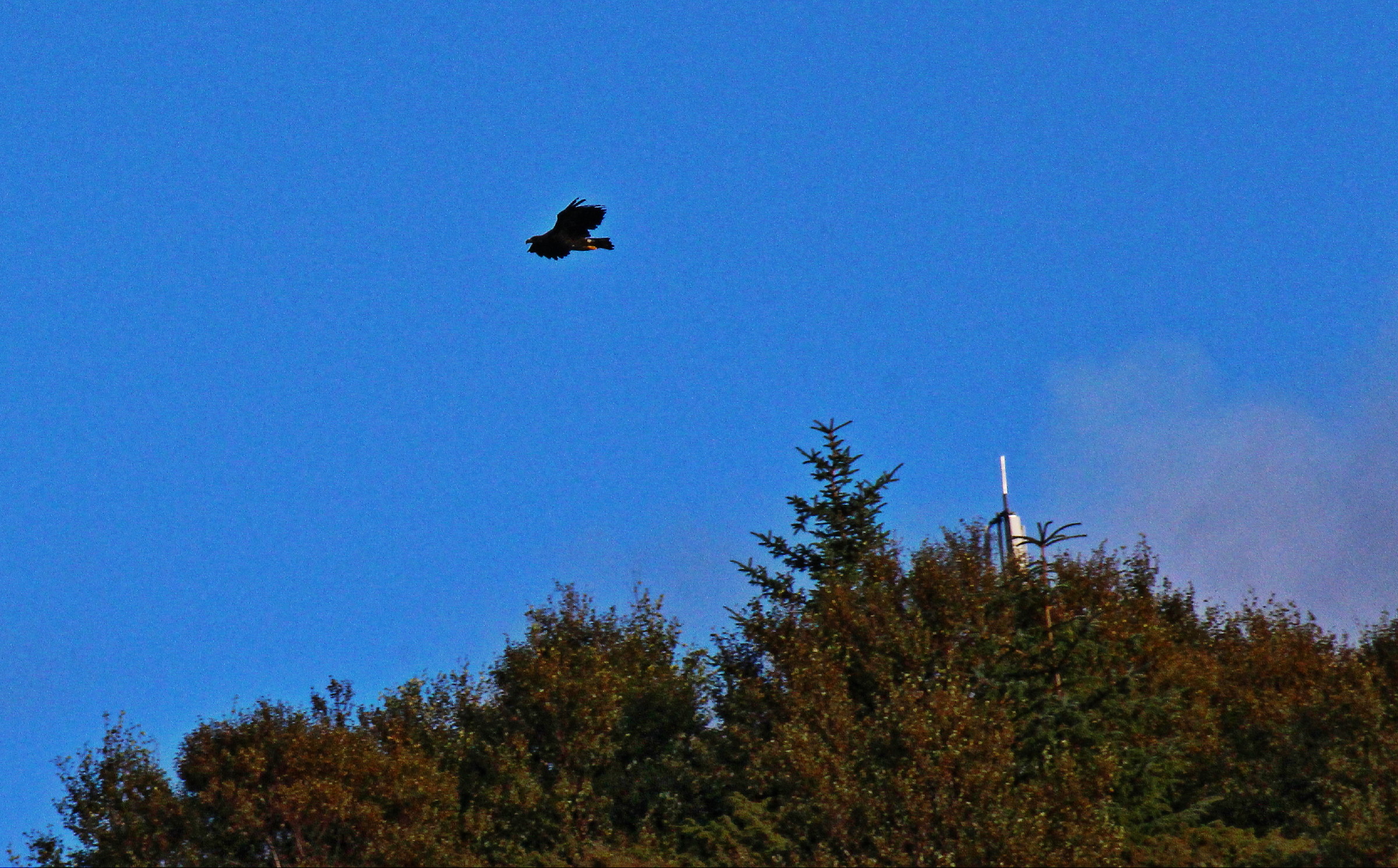 Bris fra NV skaper tilstrekkelig løft langs fjellsiden til å kunne seile uten vingekraft. Ørna sirkler adskillige runder før den forsvinner over Bratthammar på vei nordover.