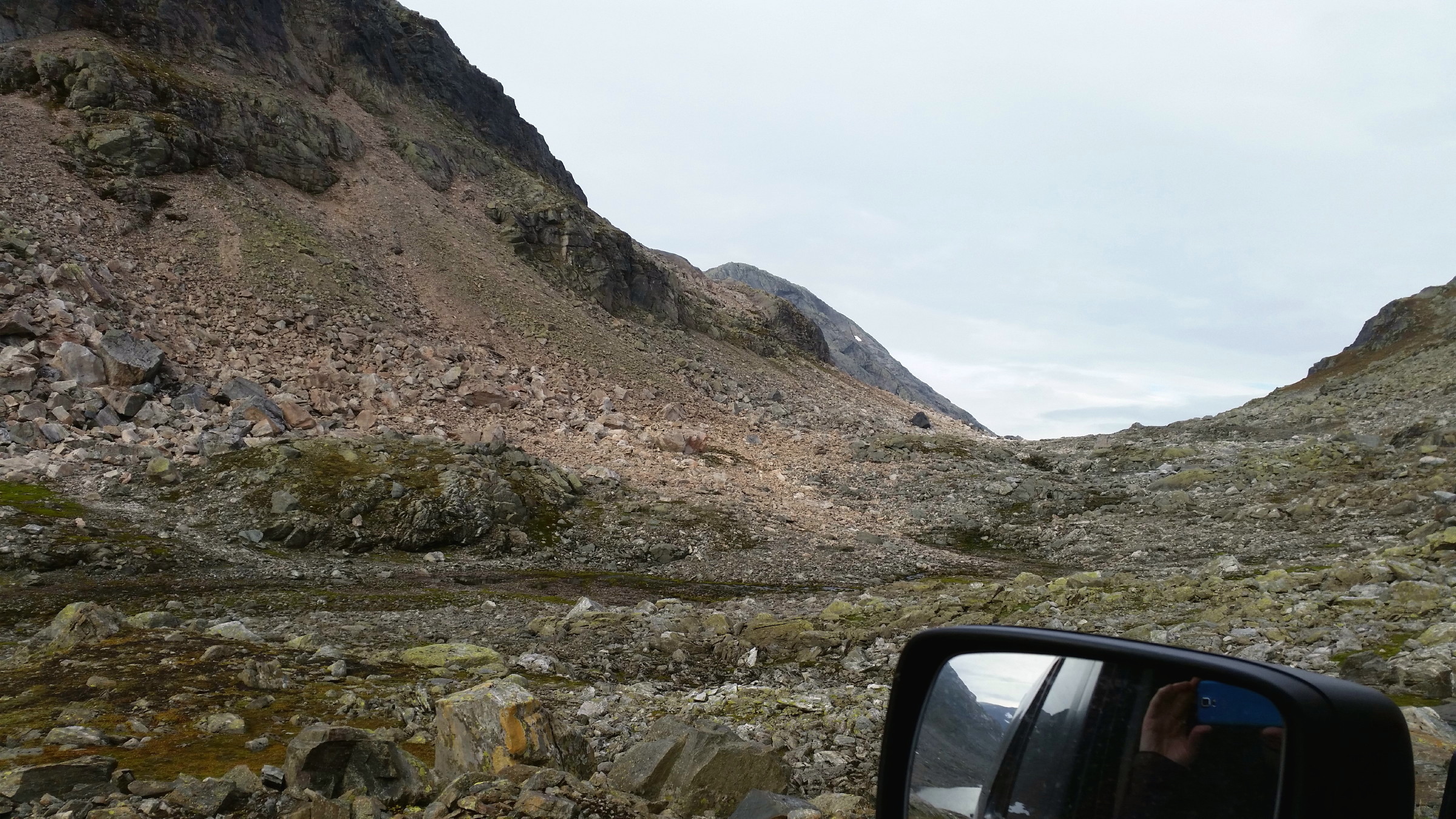 på tur i høyfjellet pr. bil, til ca. 1280 moh – takket være åpen veibom under reinsjakta