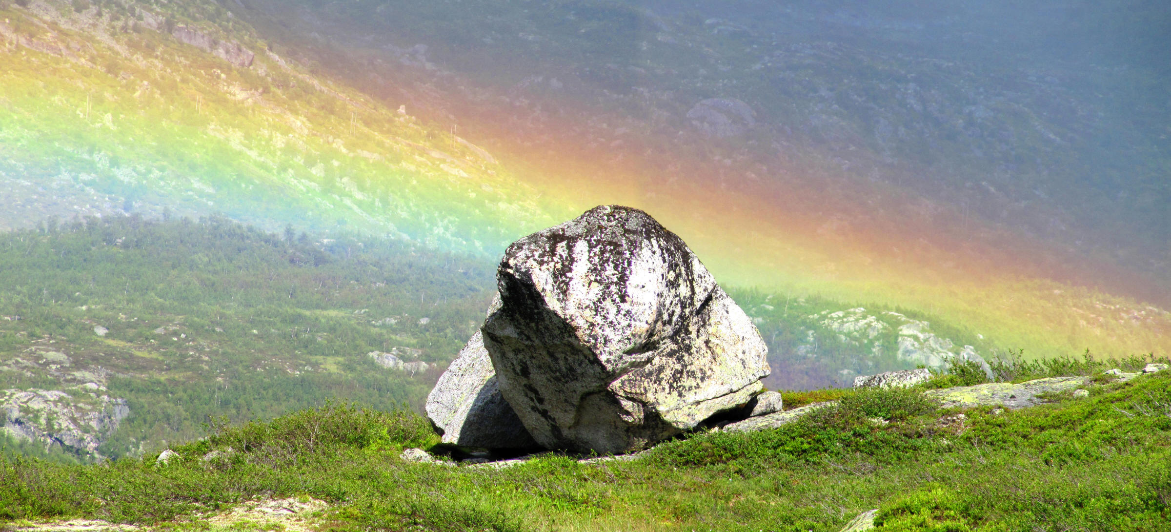 I et leksikon står å lese «at regnbuen er et naturbetinget, ikke lokaliserbart fenomen»  –     kjekt å vite  –  slik kan det også sies …