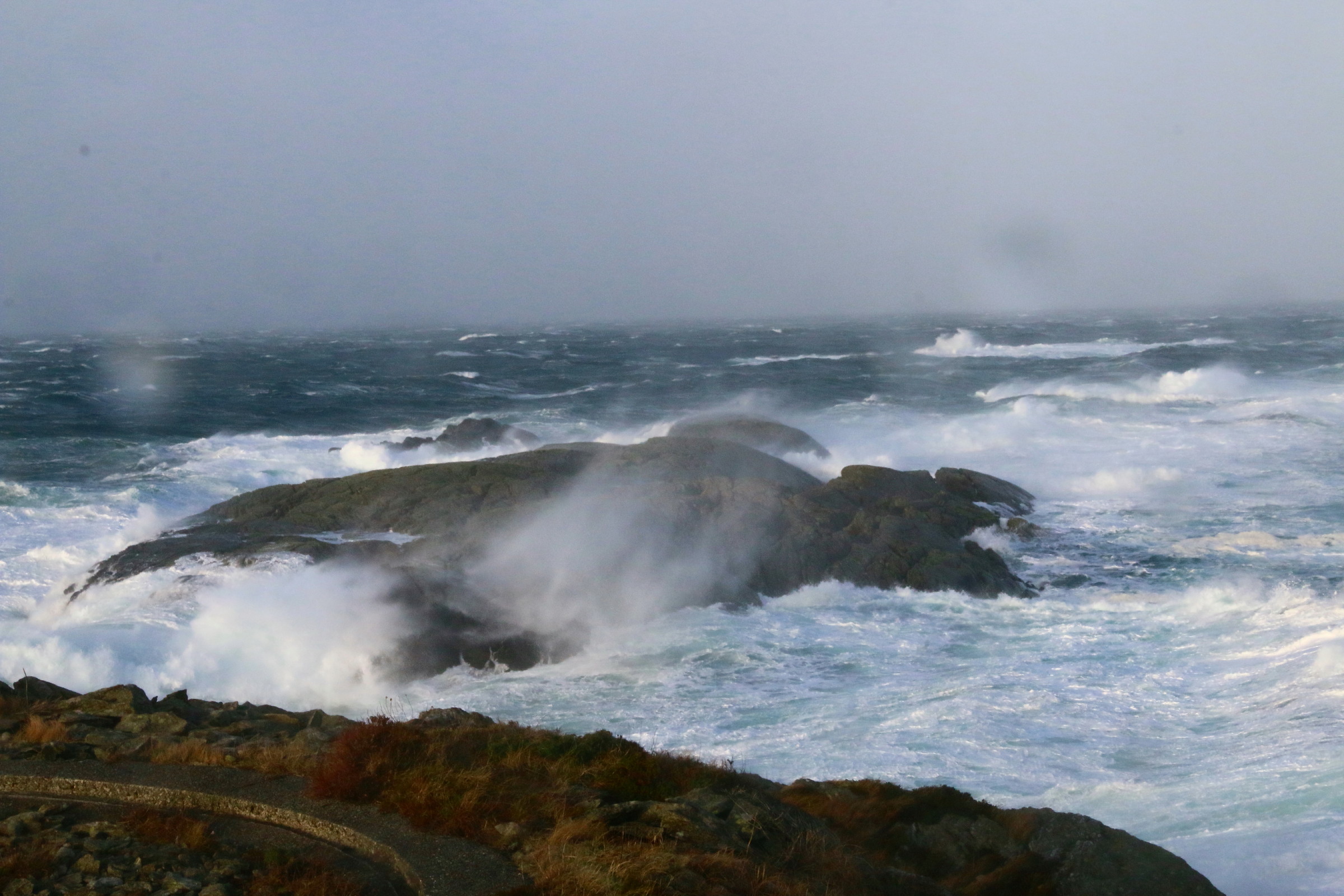 Ikke lett å fotografere under slike forhold – vanskelig å stå, tilmed sitte, i ro i vindkast