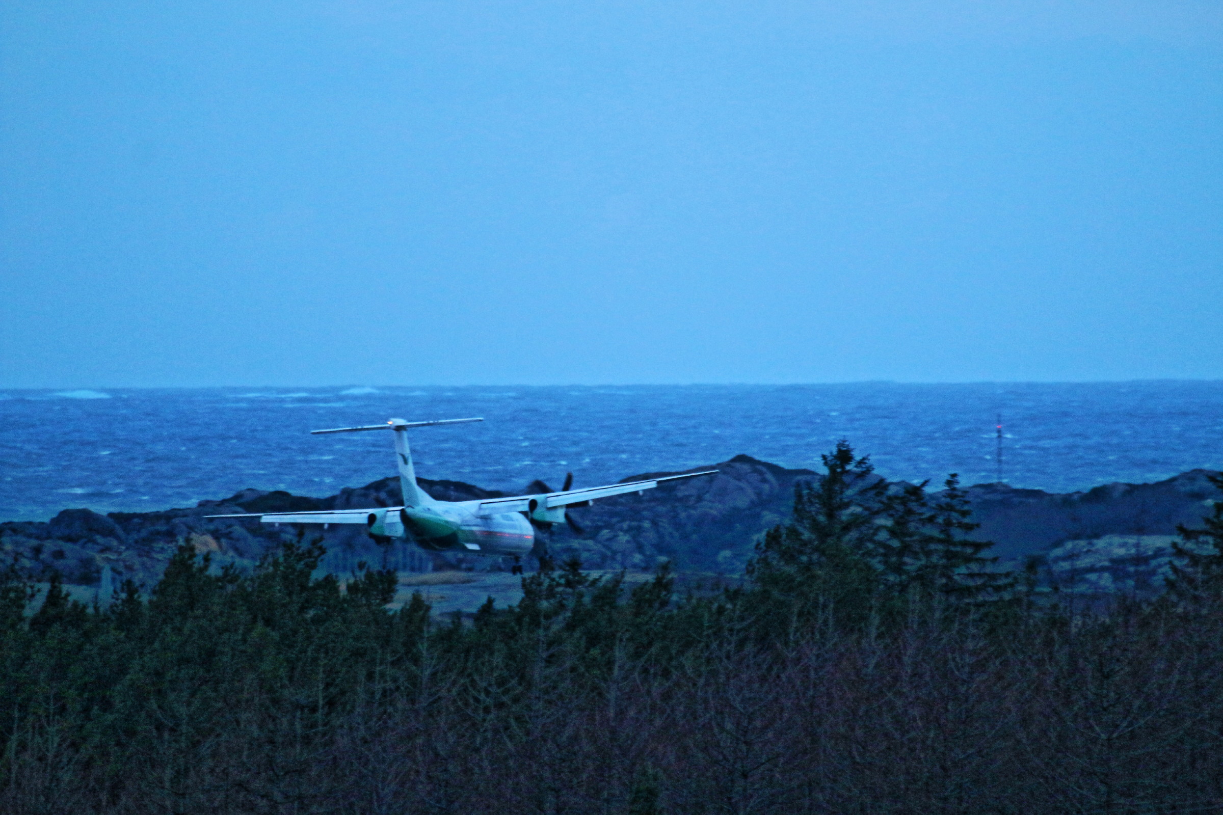 her er ‘Widerøe’ på vei inn fra sør, sekunder før ‘touch-down’, en ruskete nordavindsdag