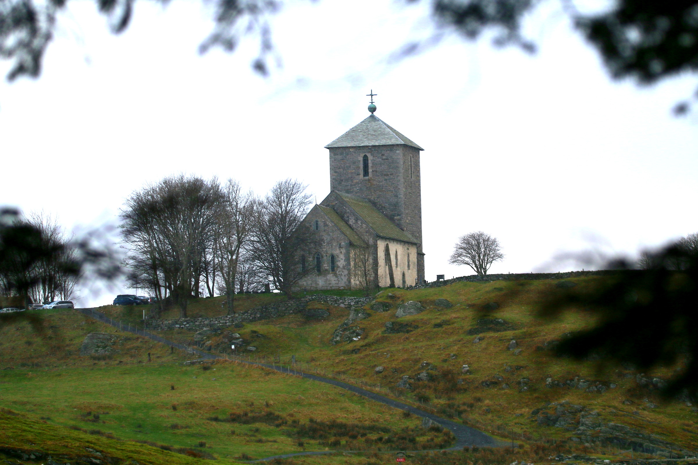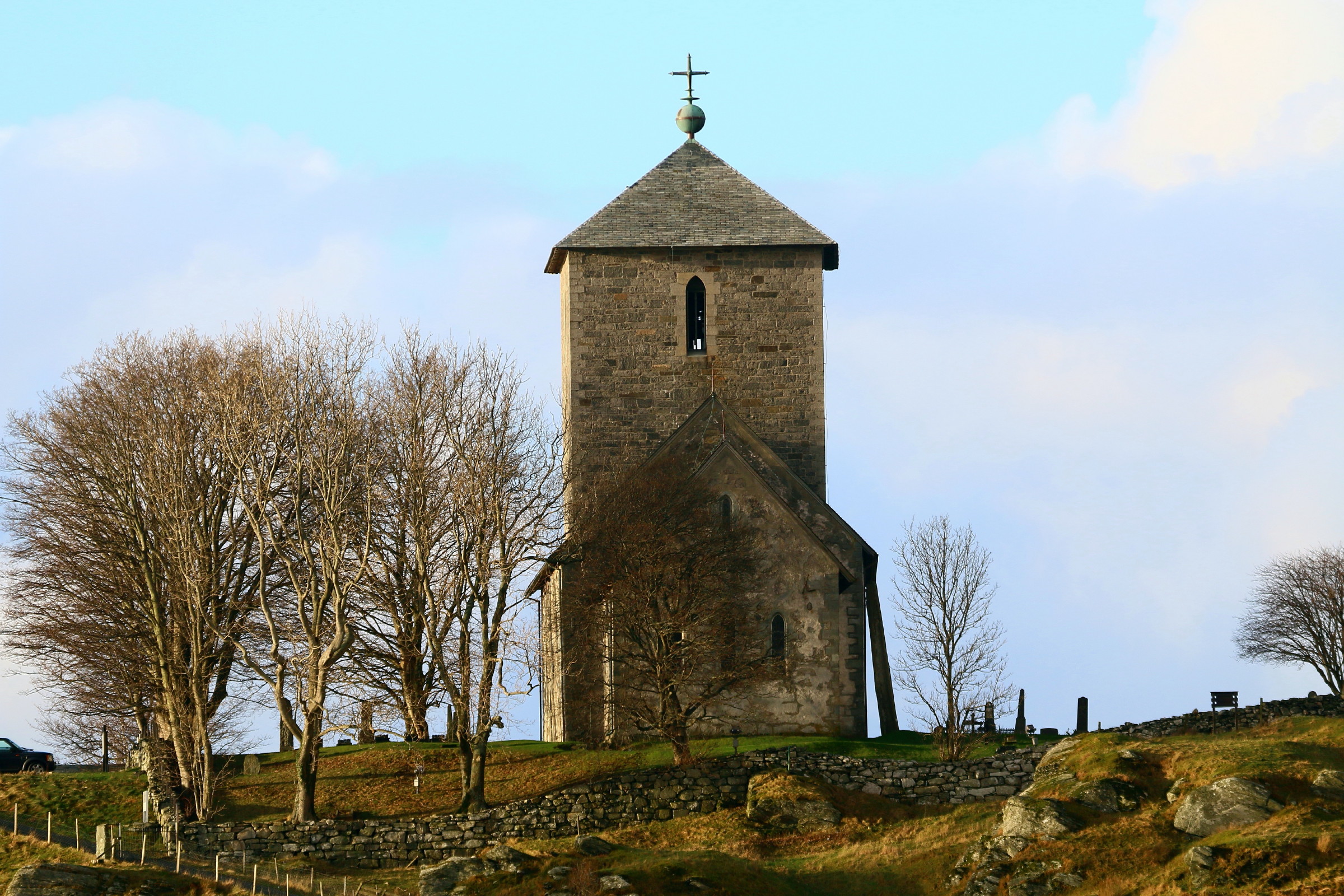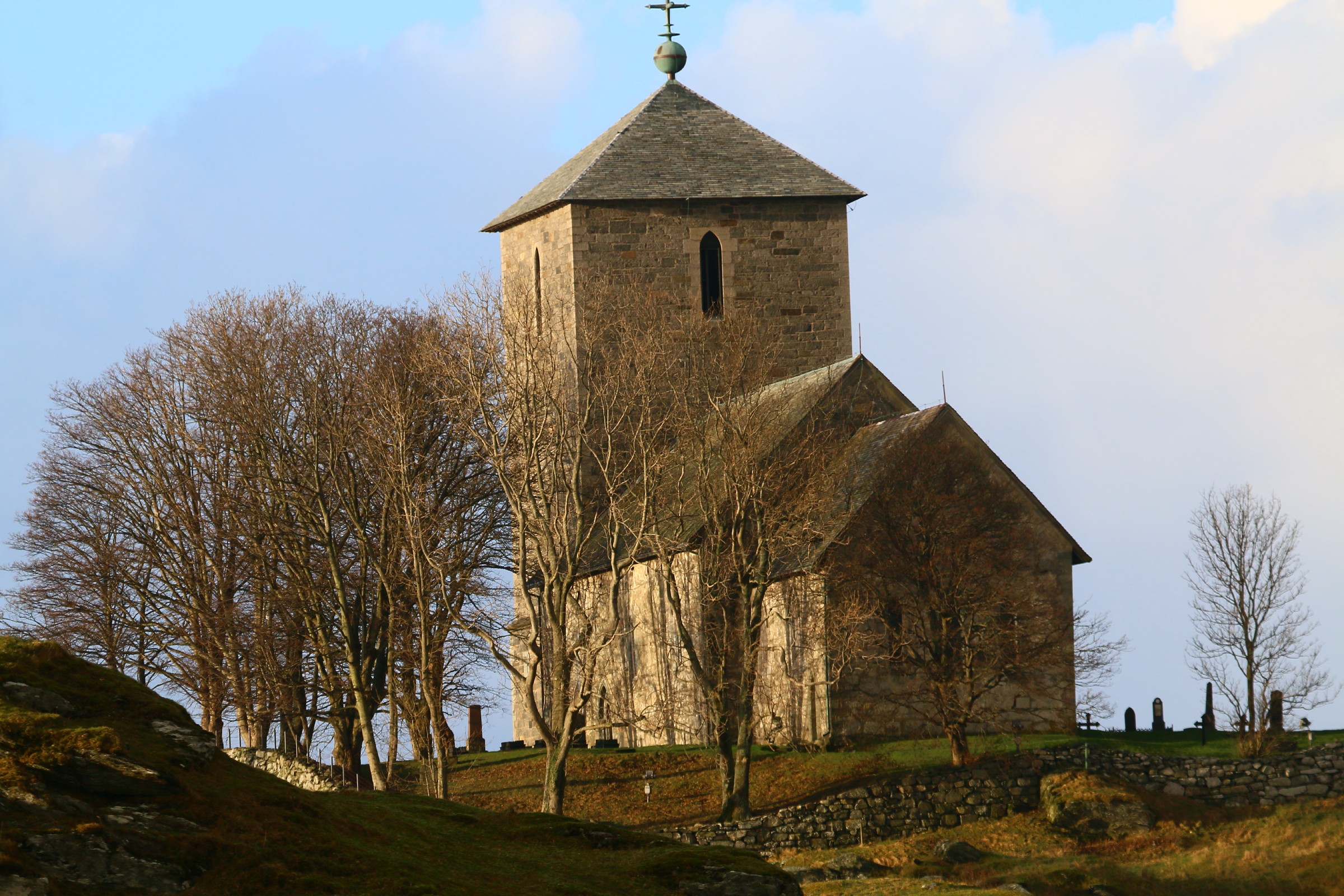 Bautasteinen «Jomfru Marias synål» er 7,2m høg, men den har vore høgare. Segna fortel at dommedag kjem når toppen av bautaen rører kyrkjeveggen. Det blir sagt at opp gjennom tidene har avaldsnesprestane i ly av nattemørket hogge bitar av toppen – og slik har dei redda verda frå undergong. I dag er avstanden mellom bautaen og kyrkjeveggen 9,2cm! (hentet fra: http://avaldsnes.info/olavskirken/subpage/ )