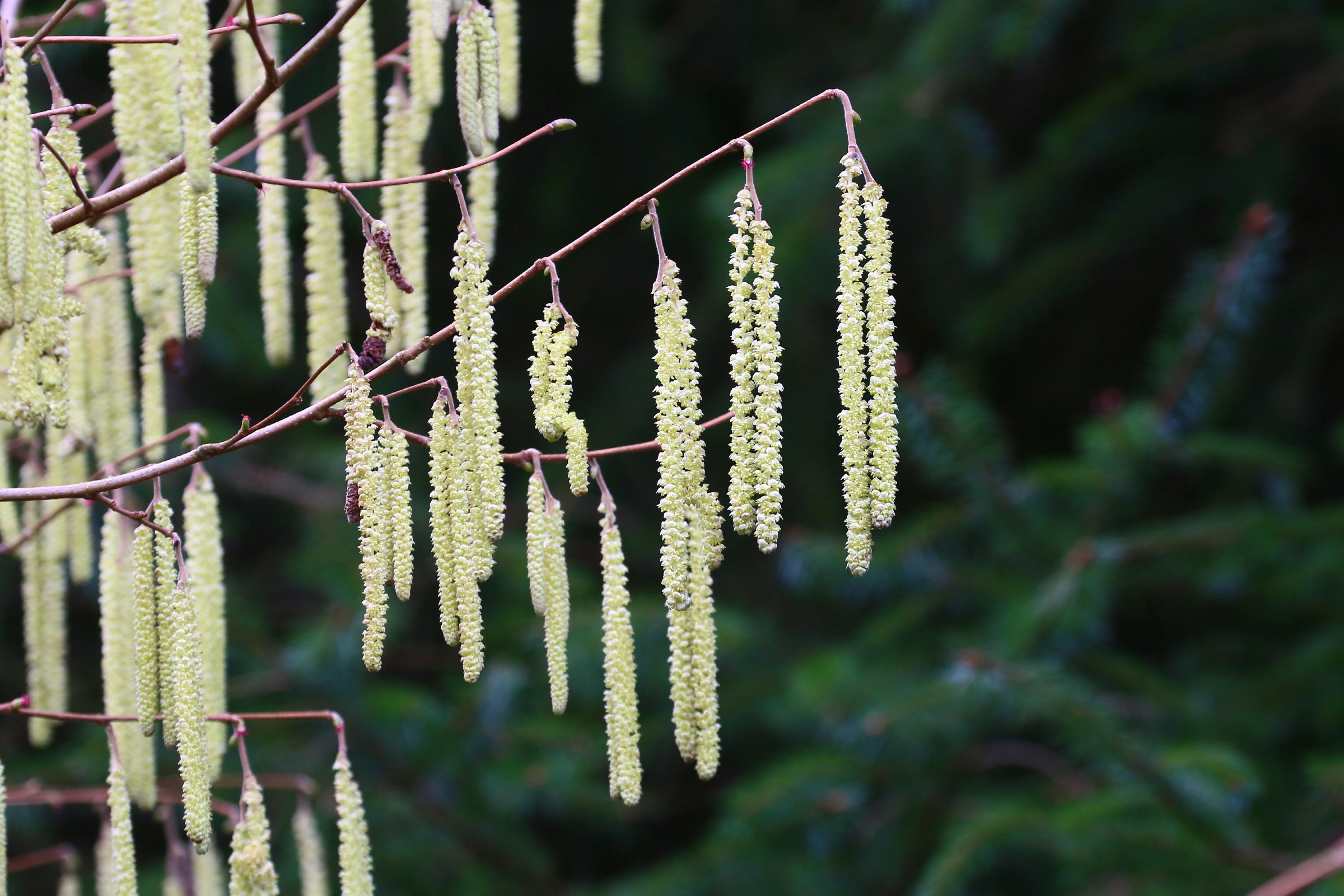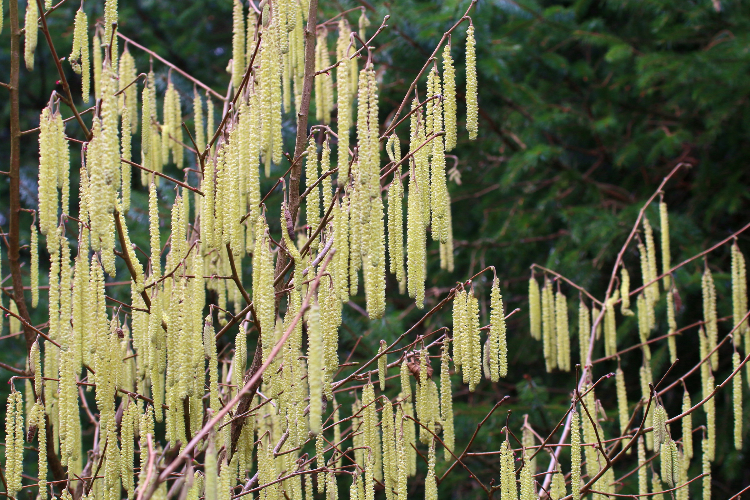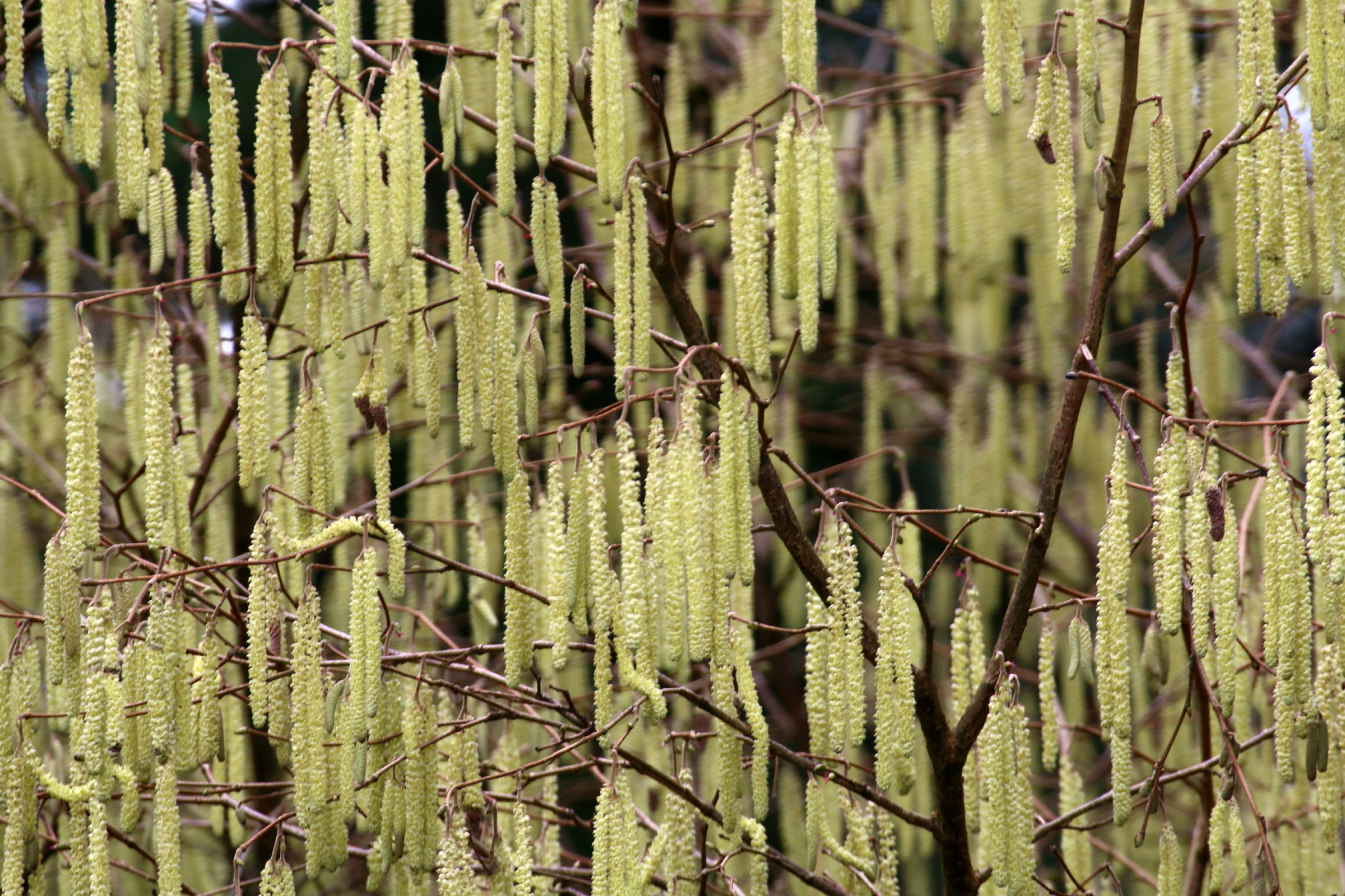 Rik blomstring i år på hasselen (Corylus avellana) –