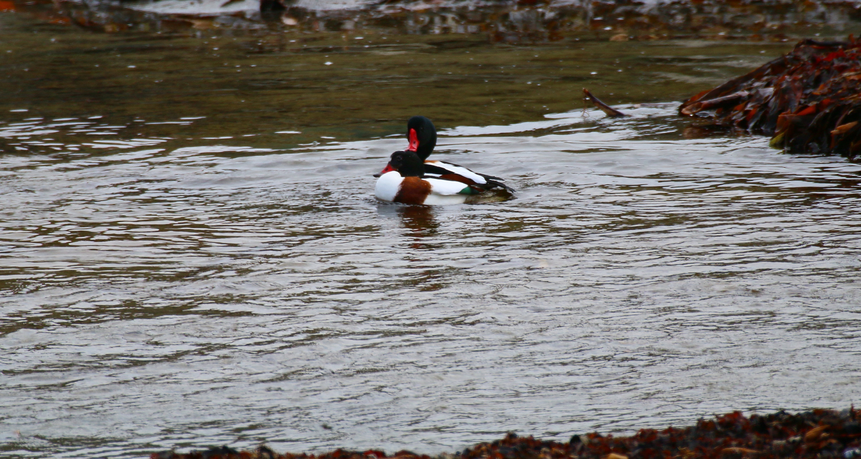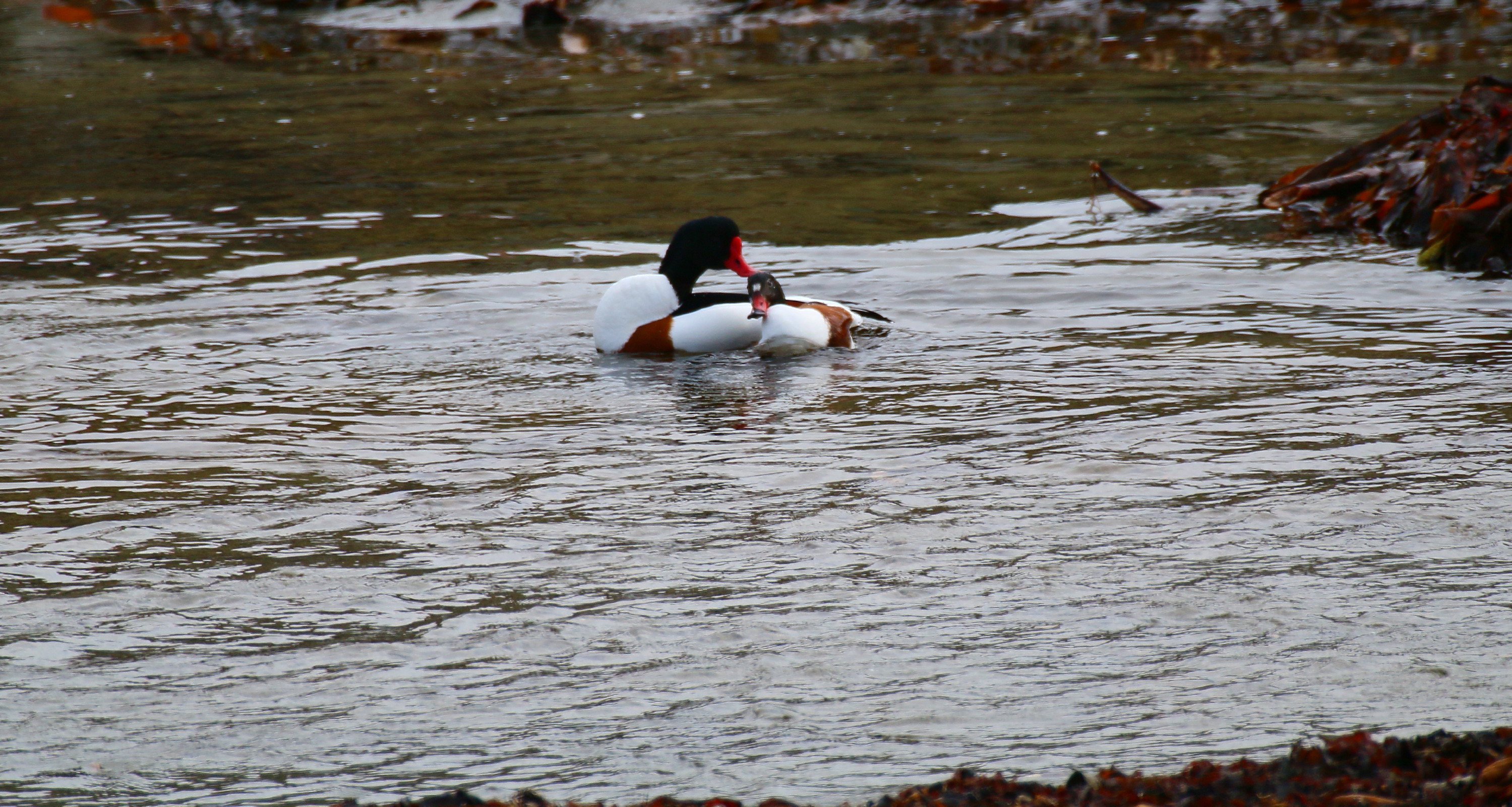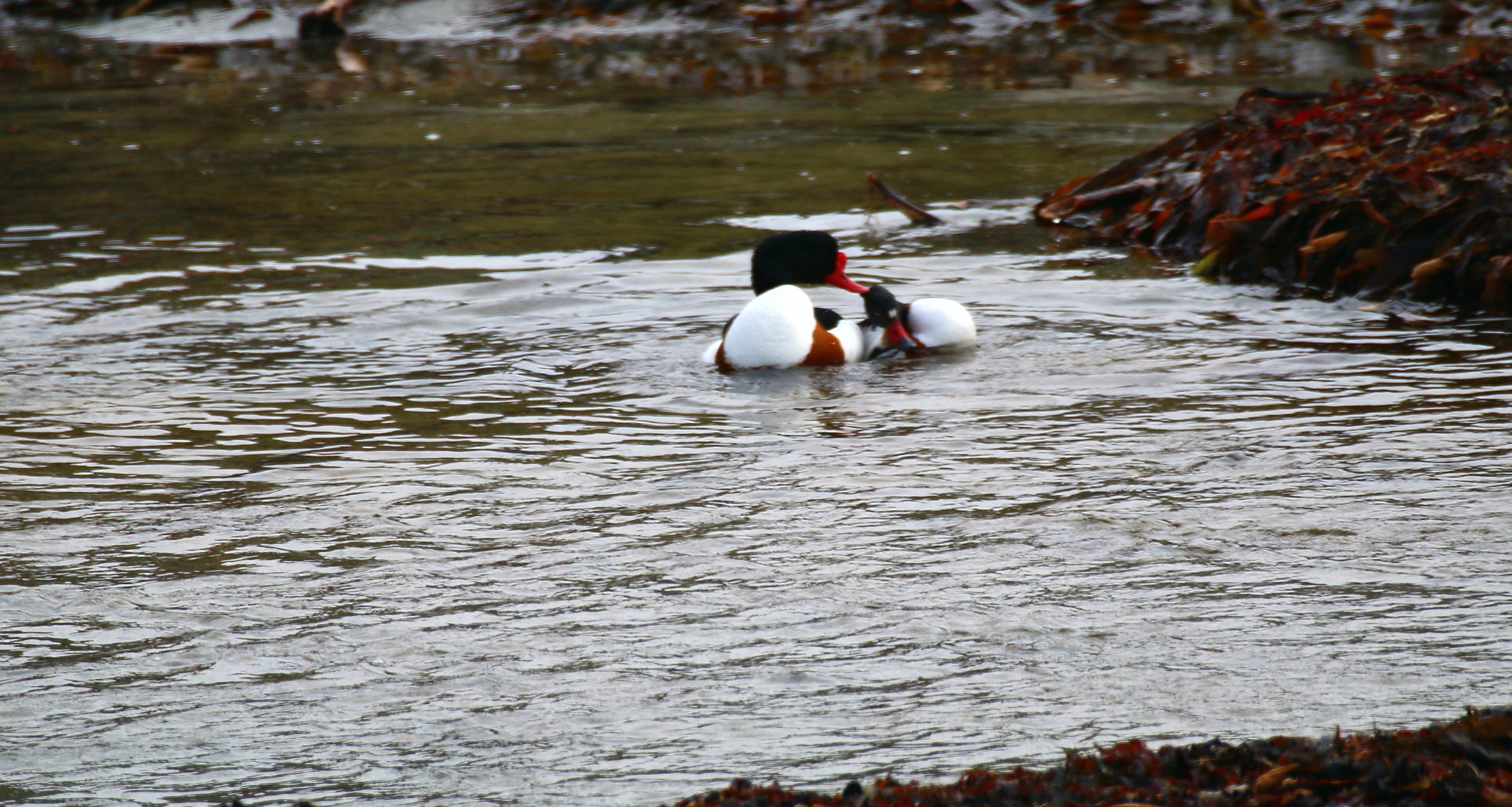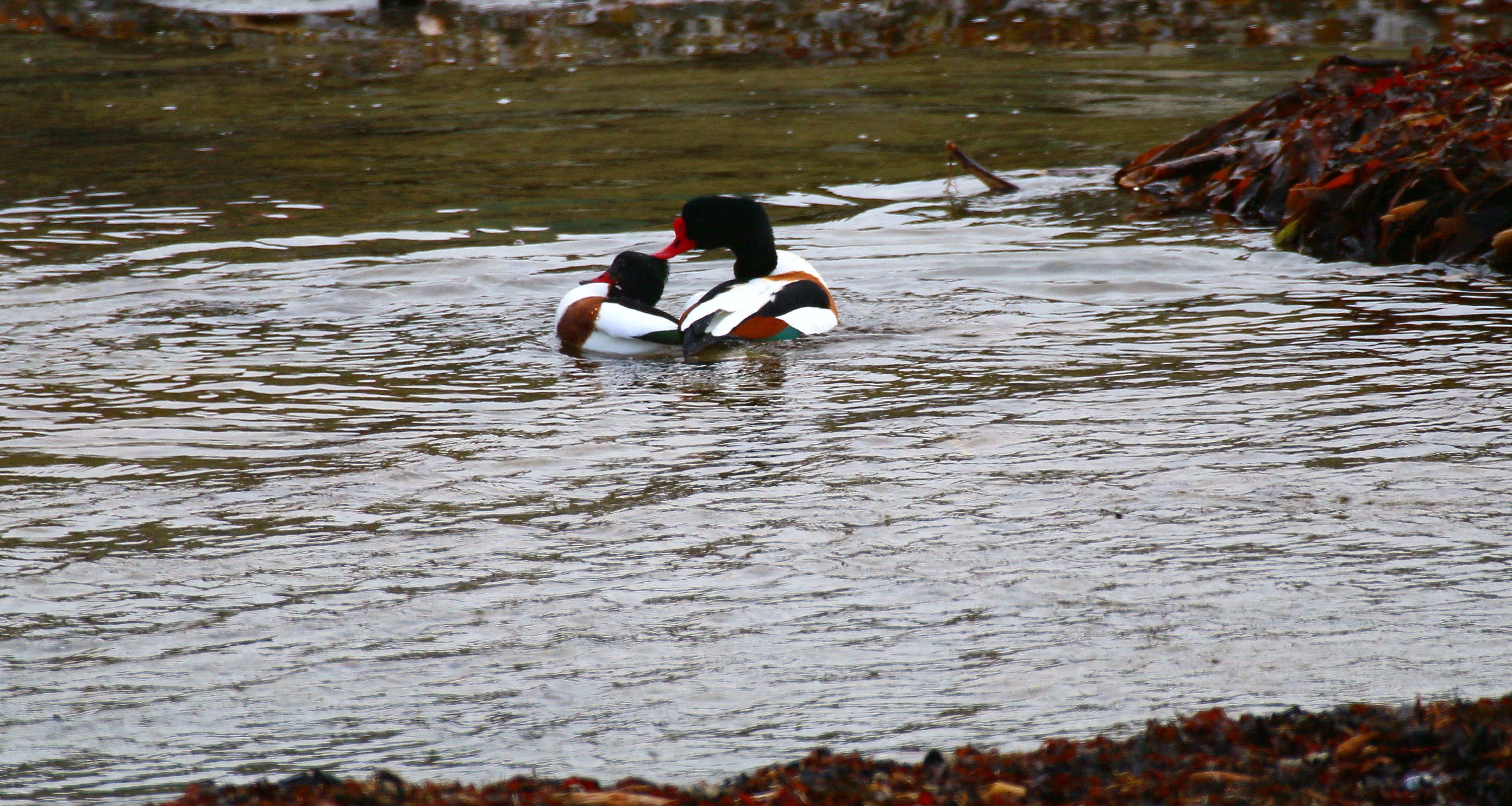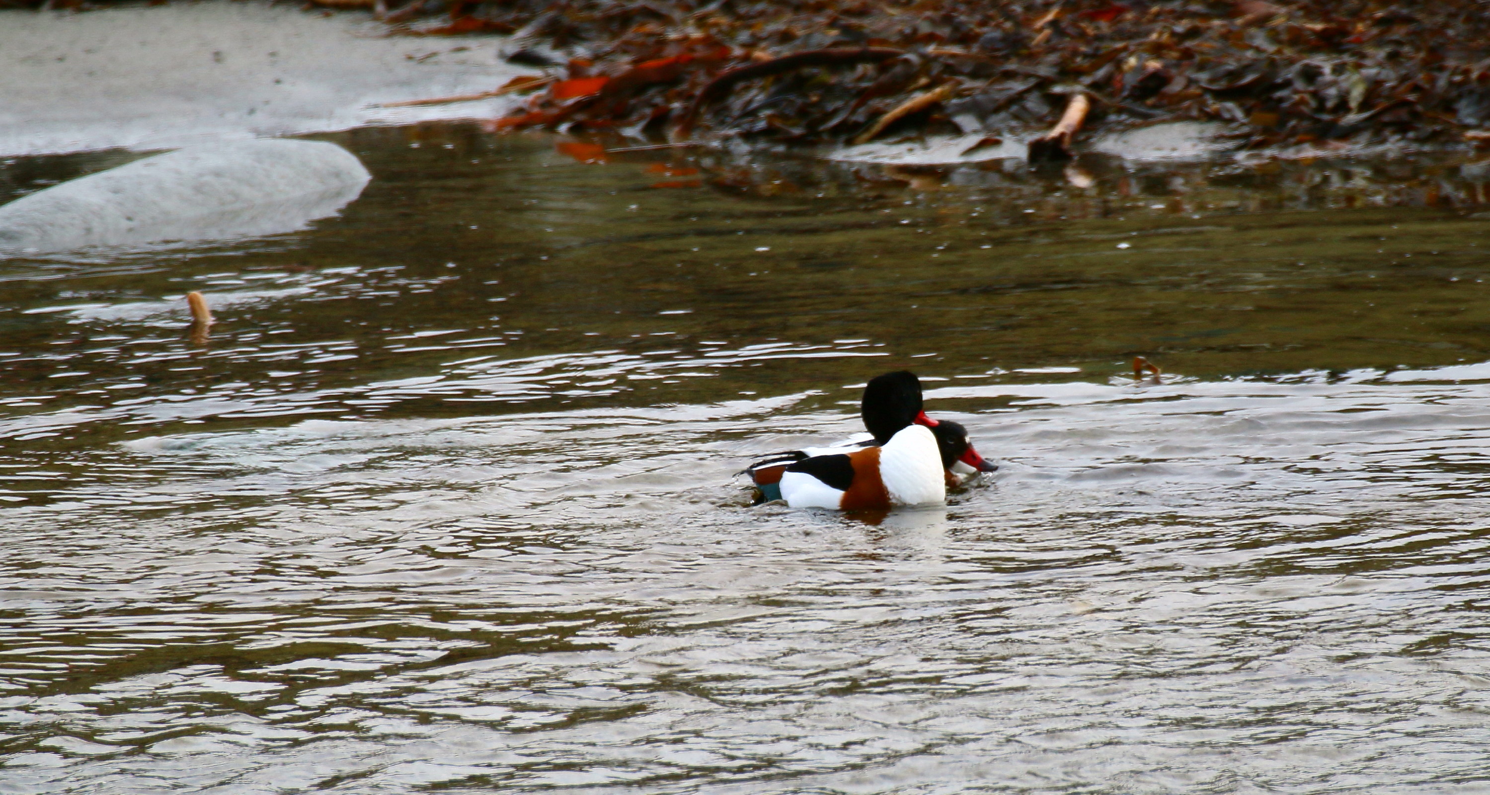 det sist ankomne paret i farta inn fra bukta, svært målbevisst mot stranden lenger inne …