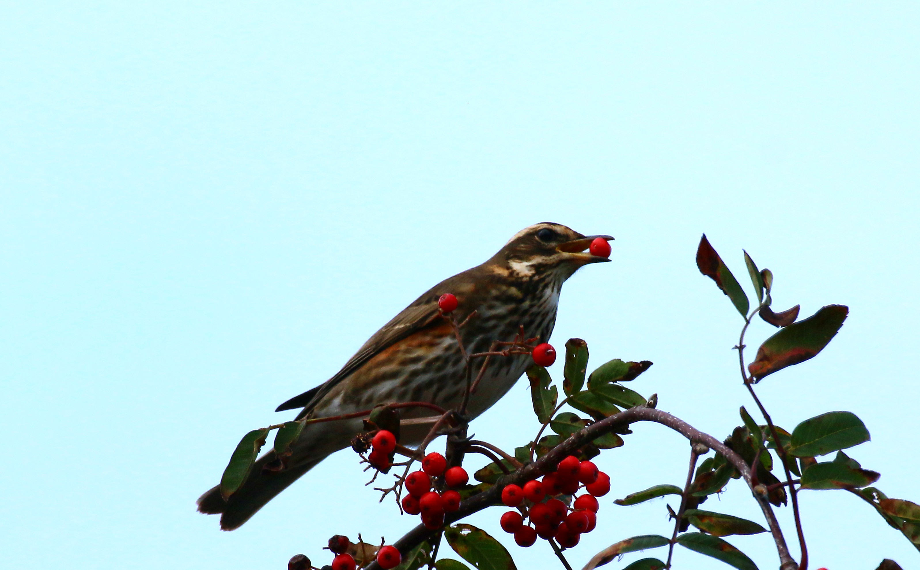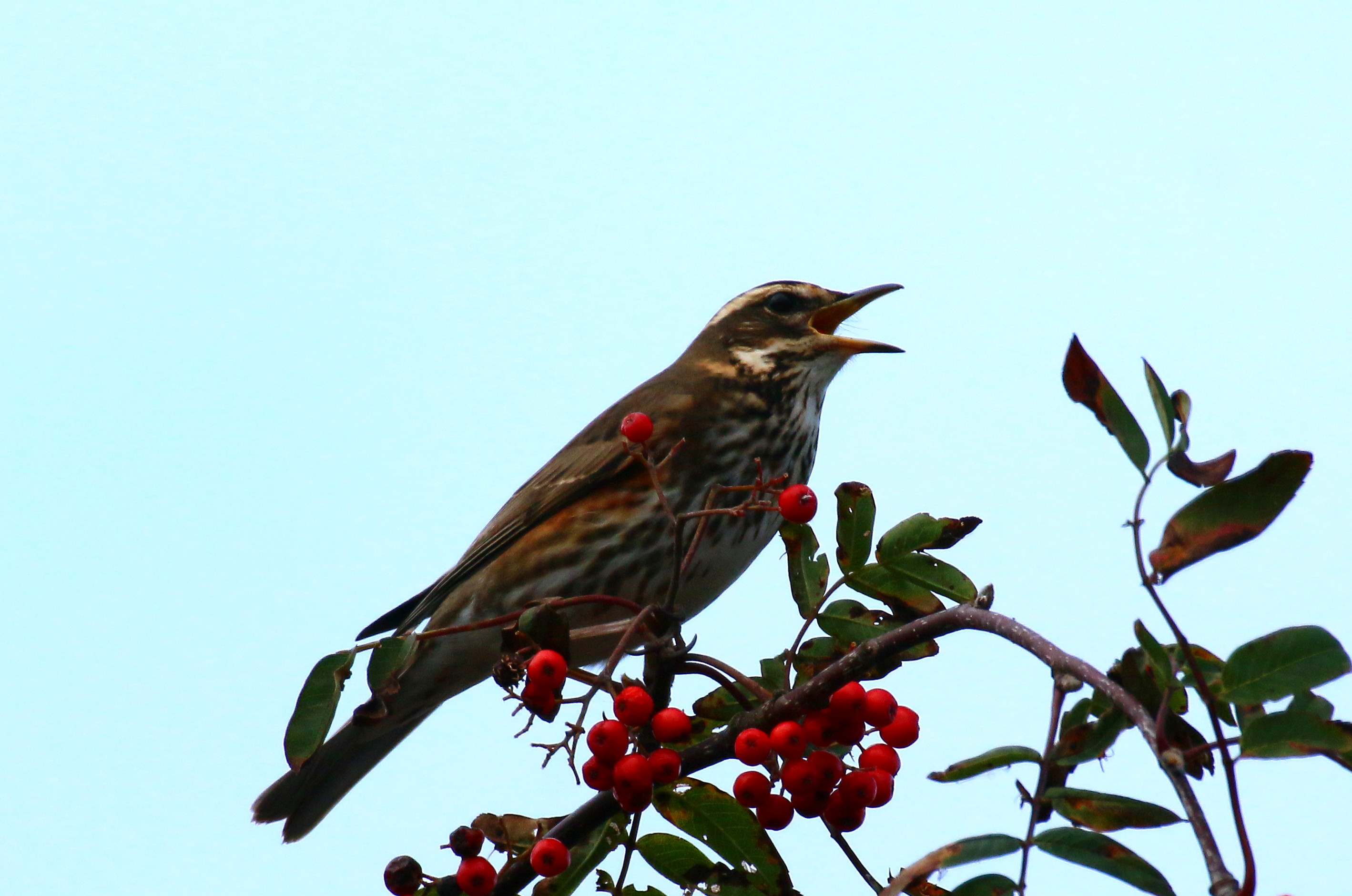 I år med mye rognebær venter enkelte rødvingetroster med å trekke sydover.