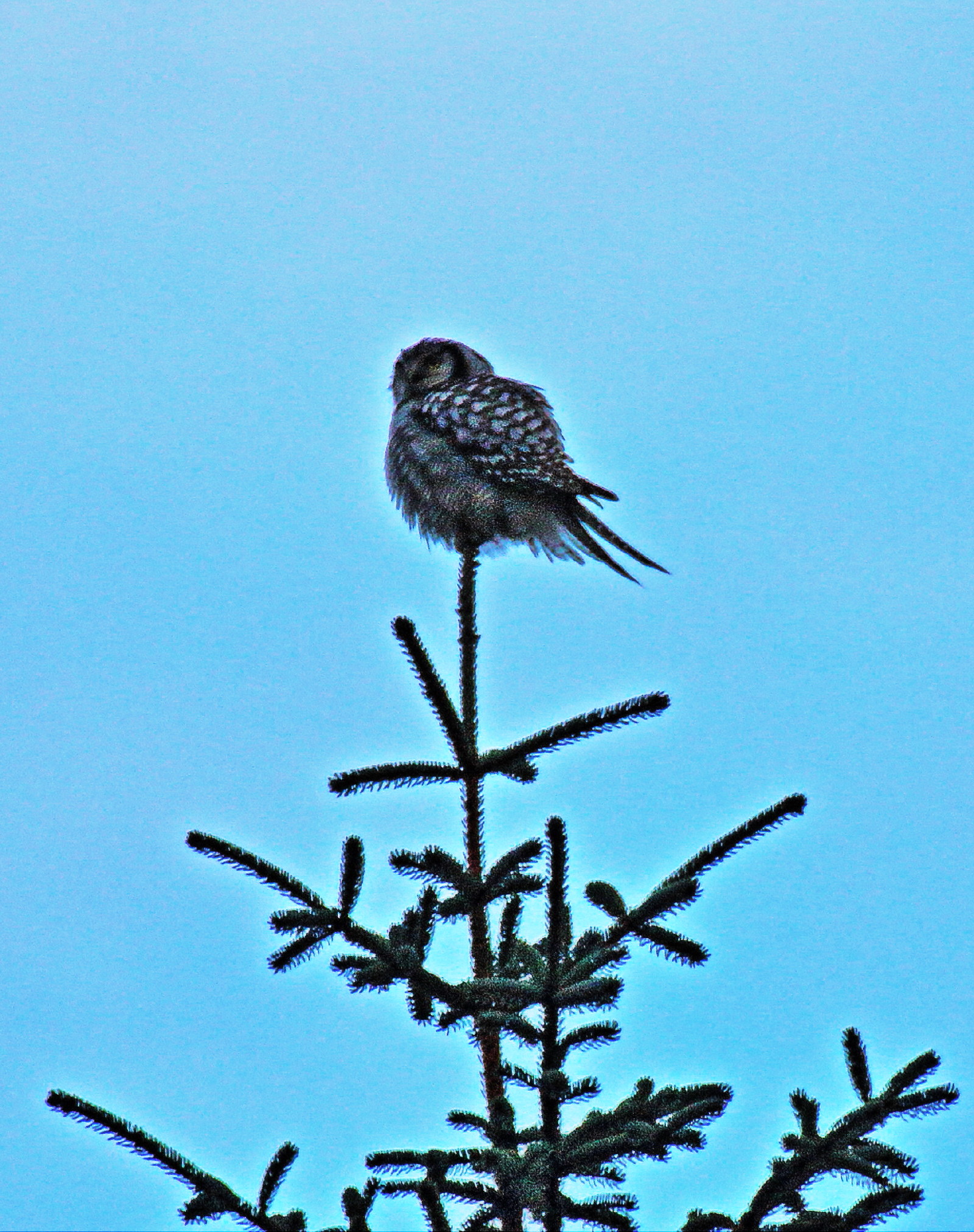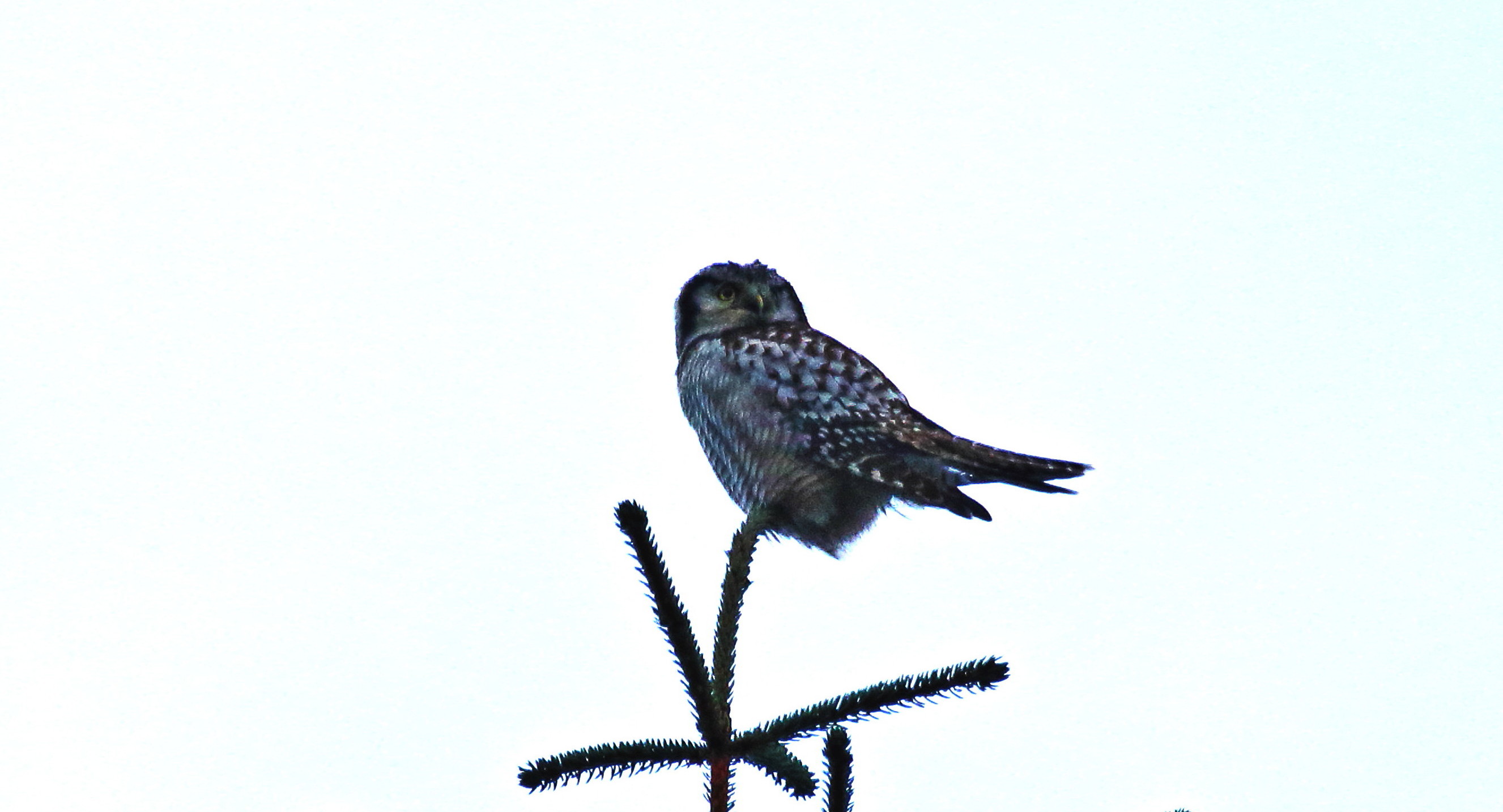 Tirsdagen i middagsmørke var min første ugle på plass på brikken, en haukugle i Sveio.