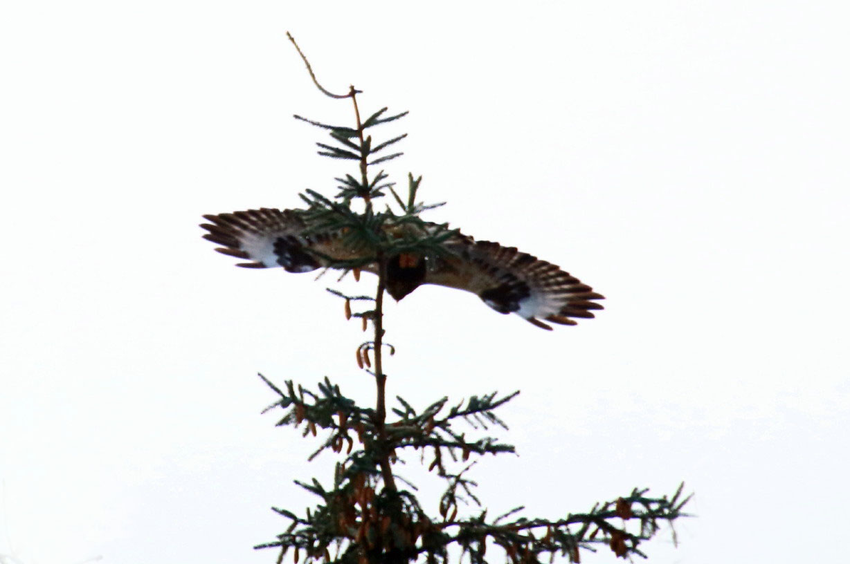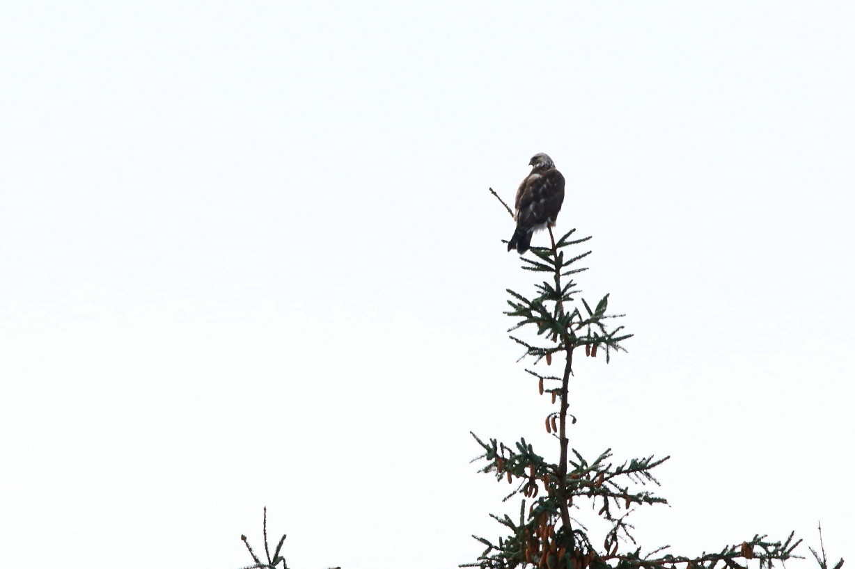 – og greit da med bil når fjellvåken leker ‘gjemmeleken’ med deg, slipper deg innpå et stykke bare før den letter og flyr noen hundre meter til en annen tretopp innen synsvidde, for så å gjenta leken når du har kjørt diverse omveier for igjen å komme nære innpå, og for etterhvert å havne i samme treet igjen som da leken begynte …