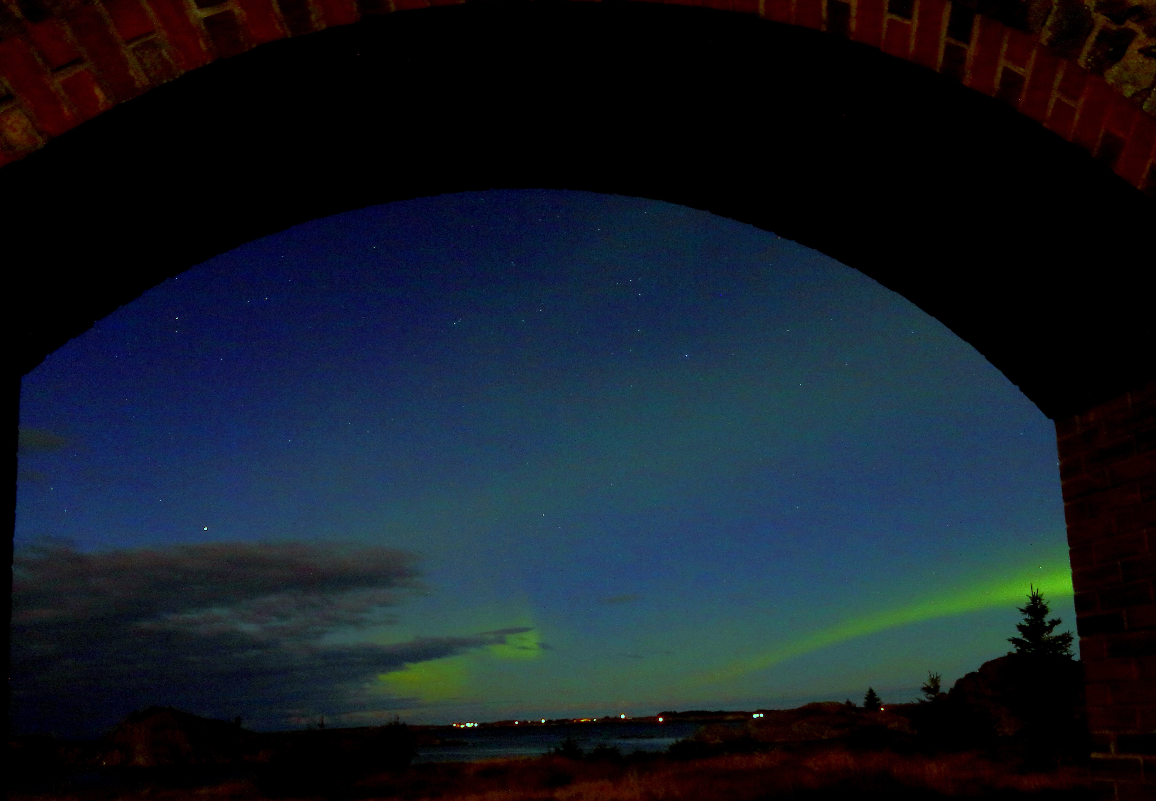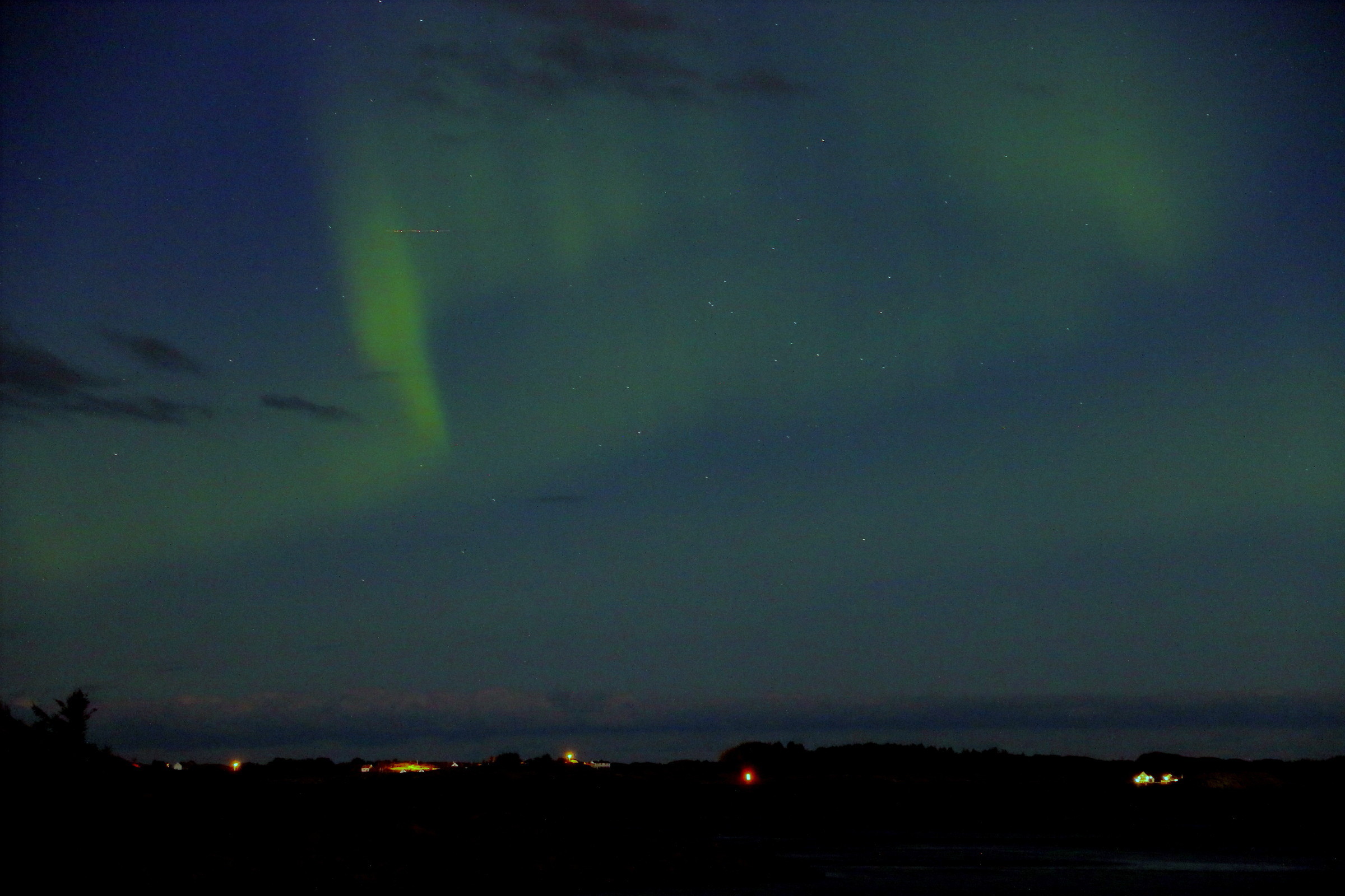 og det blir nesten også det hele .. de neste par timene tar det aldri skikkelig av igjen, viser seg stort sett bare som et grønt belte på nordhimmelen, uten spektakulære utbrudd ..