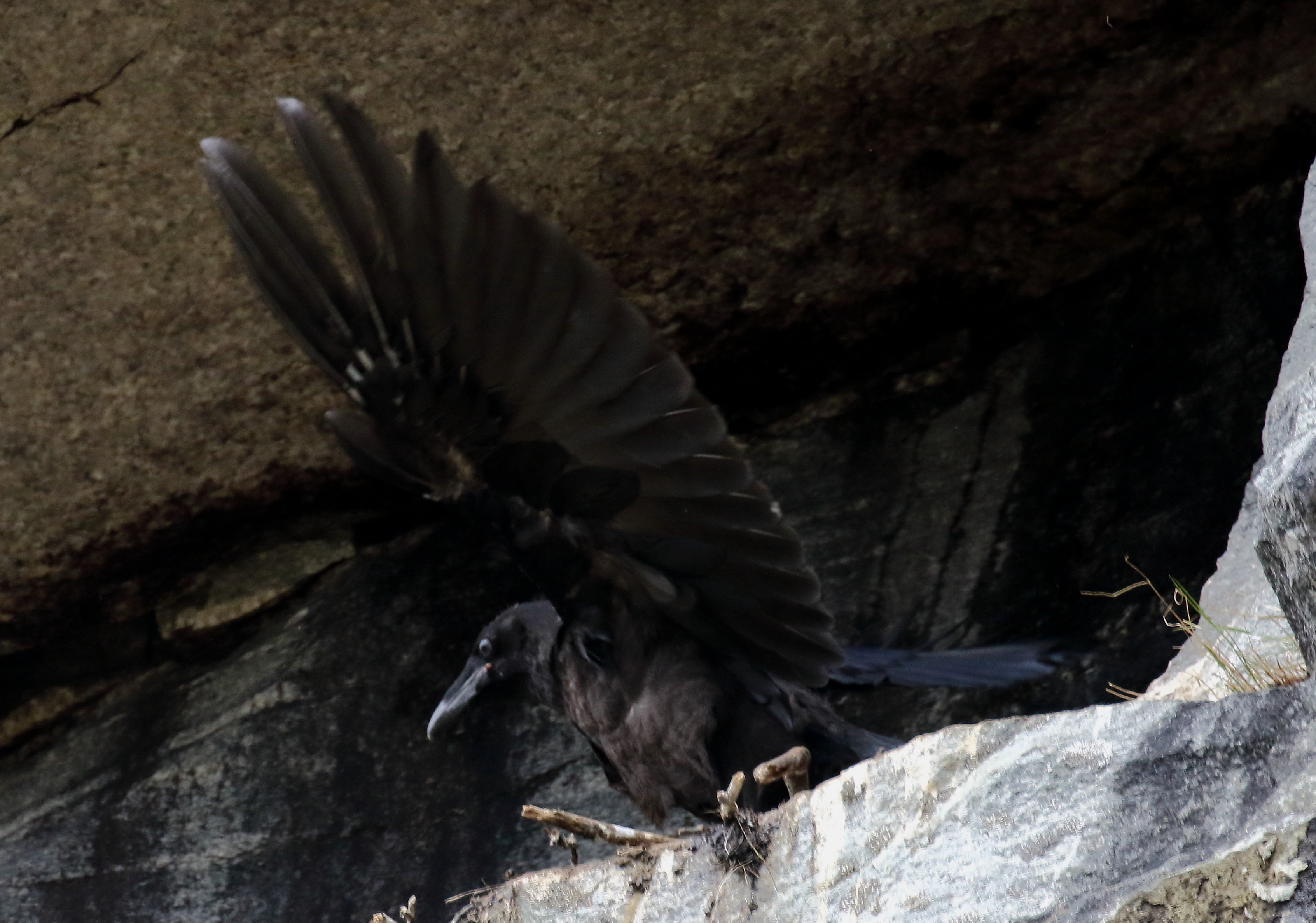 … oppe i høyfjellet, i en fjellskrent – under et overheng, i et reir