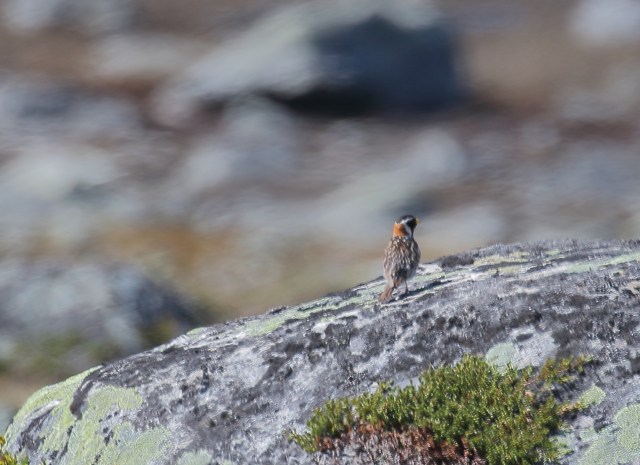Lappspurven dukket bare fram ved én anledning på turen. Den satt gjemt i et lavt vierkratt og ble skremt opp da vi var ganske nær den. Lenge satt den heller ikke på steinen like ved, før den stakk. Og bildene ble tilsvarende få og dårlige.