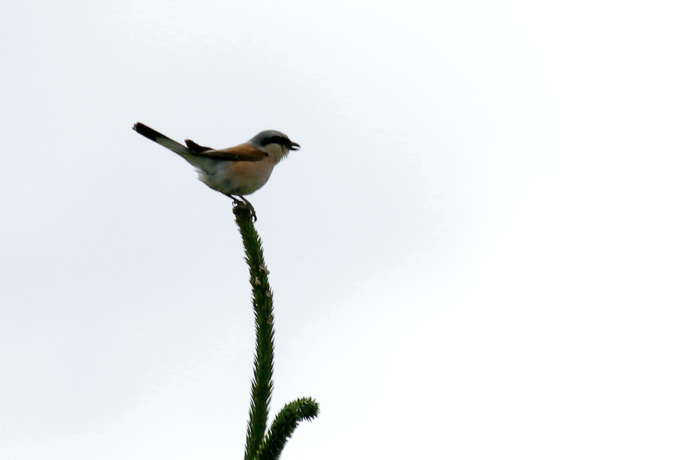 Blir møtt av varsellyden til hannen, speidende fra toppen av en gran, i samme område som jeg har sett dem tidligere i vår og sommer. Kort etter dukker også hunnen opp. De holder seg rundt meg, sirkler området, setter seg i samme trær og busker på hver runde. Hunnen viser seg med insekter i nebbet på noen av bildene. Gjetter de har unger like i nærheten.