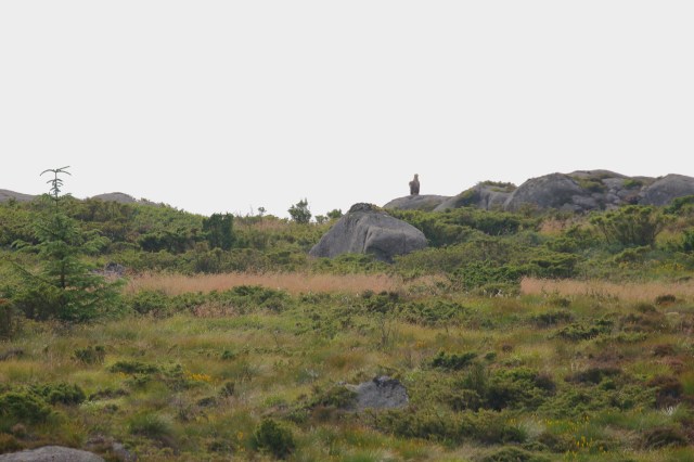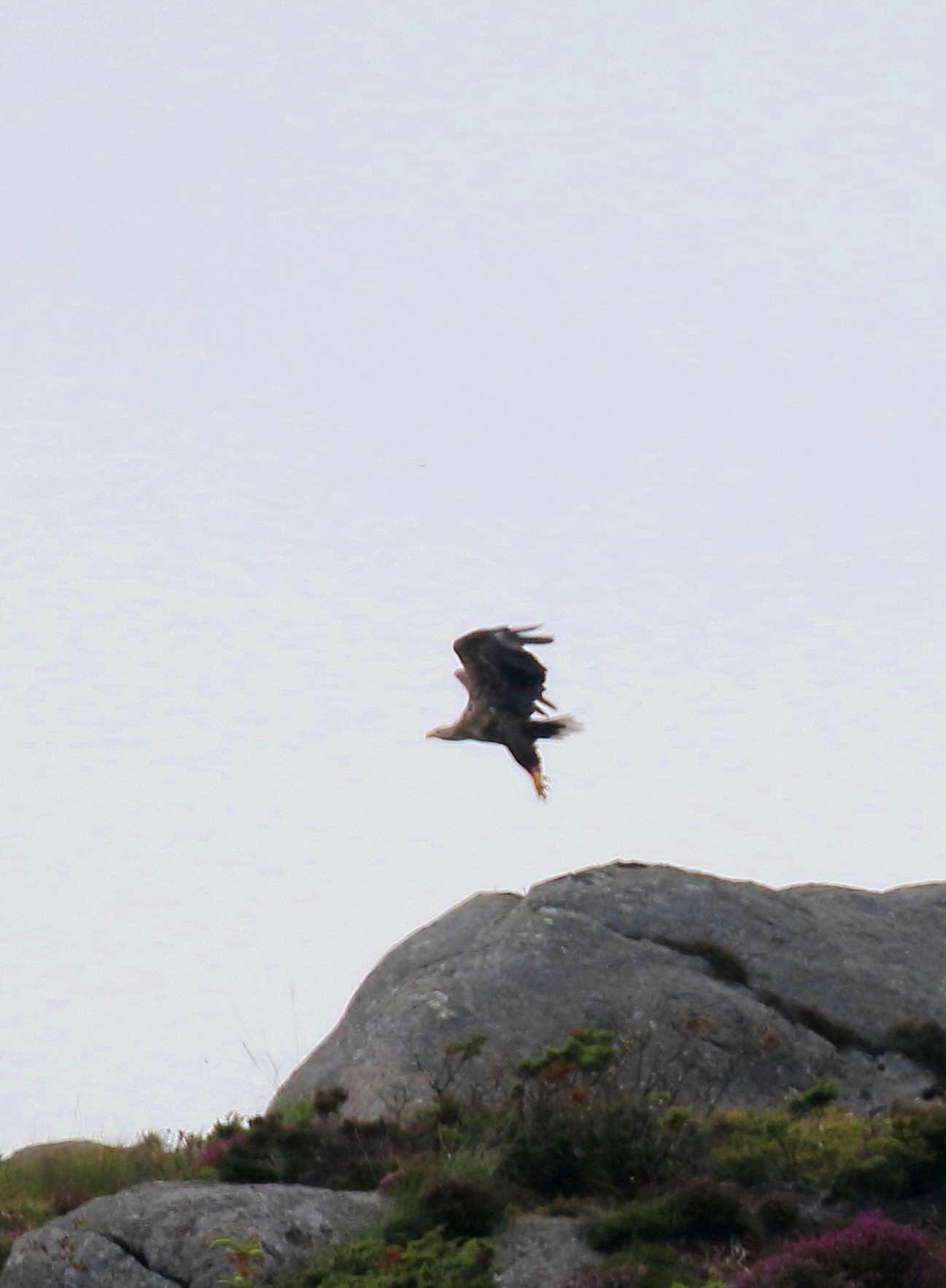 på denne turen i Karmøyheiene sitter havørna på åskanten og følger mine bevegelser lenge – til den ble lei, letter – forsvinner over kanten