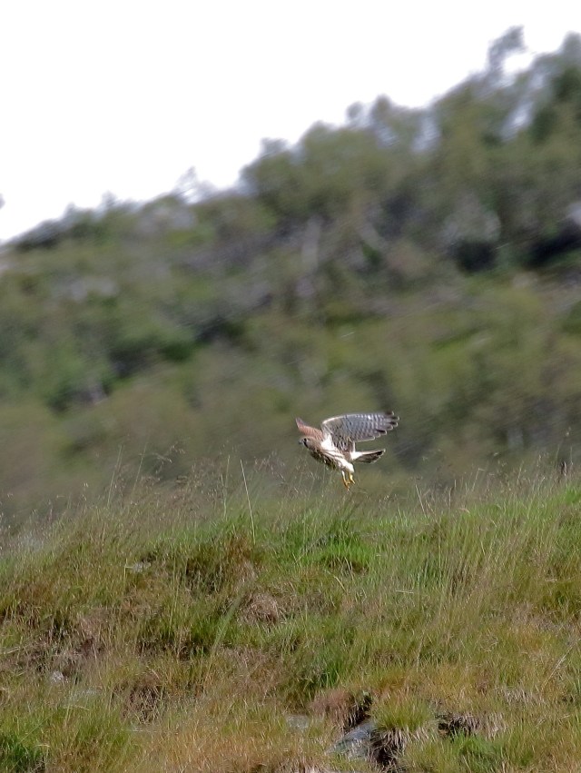 men så, en rovfugl, flyr opp og setter seg på berget, i bratthenget