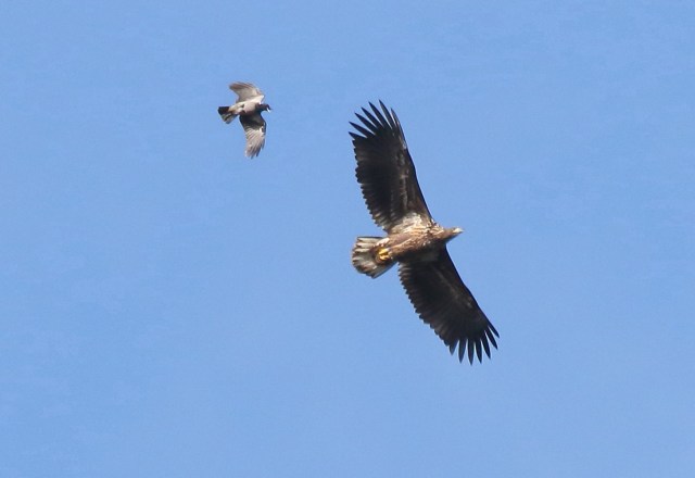 gråkråke som ‘jager’ – i det minste plager – en ung havørn