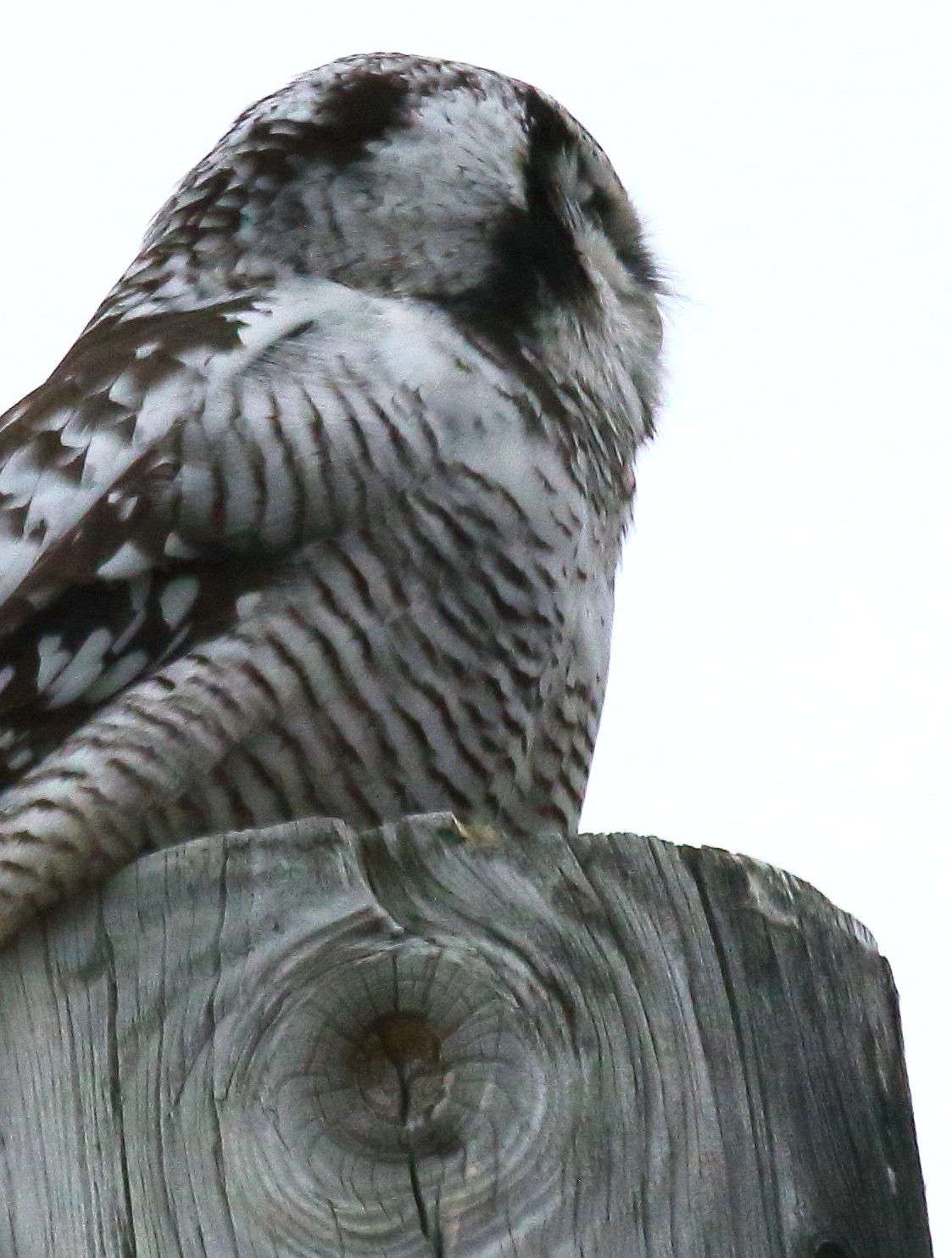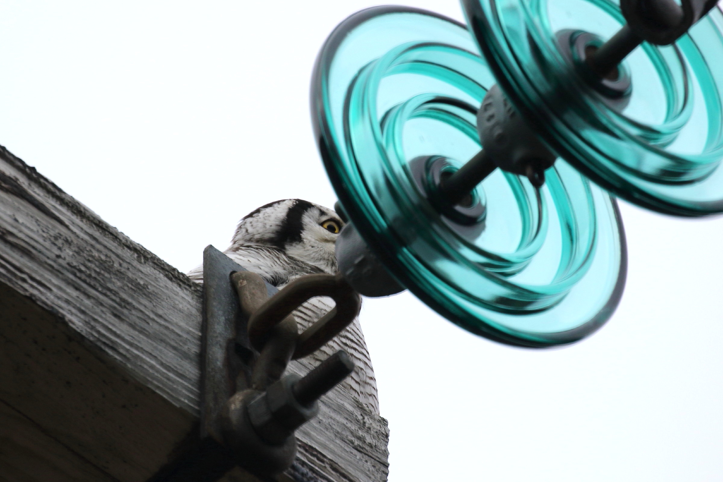 Lander i toppen av en stolpe – kikkerten avslører haukugle. Et lite søk i terrenget gir ikke resultat. Snur bilen og kjører et stykke tilbake. Ingenting. Snur bilen under en stolpe.