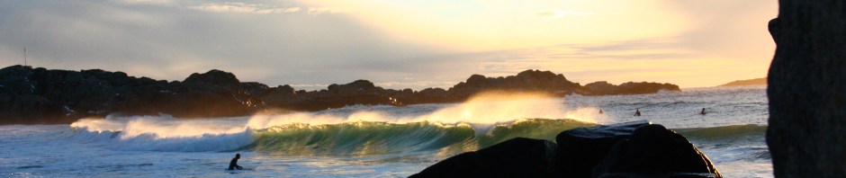 Søndag 09.12.12. var forholdene på Sandvesanden spesielt flotte – både hva vær & vind og vann & bølger angår, til glede for ivrige & tøffe surfere, såvel som for en tilfeldig fotograf – med et nesten magisk (mot)lys, flott himmel, og flaskegrønne bølger som motvinds bryter hvitt mens sola på hell forgyller sjøsprøyten idet østavinden fører den fralands.