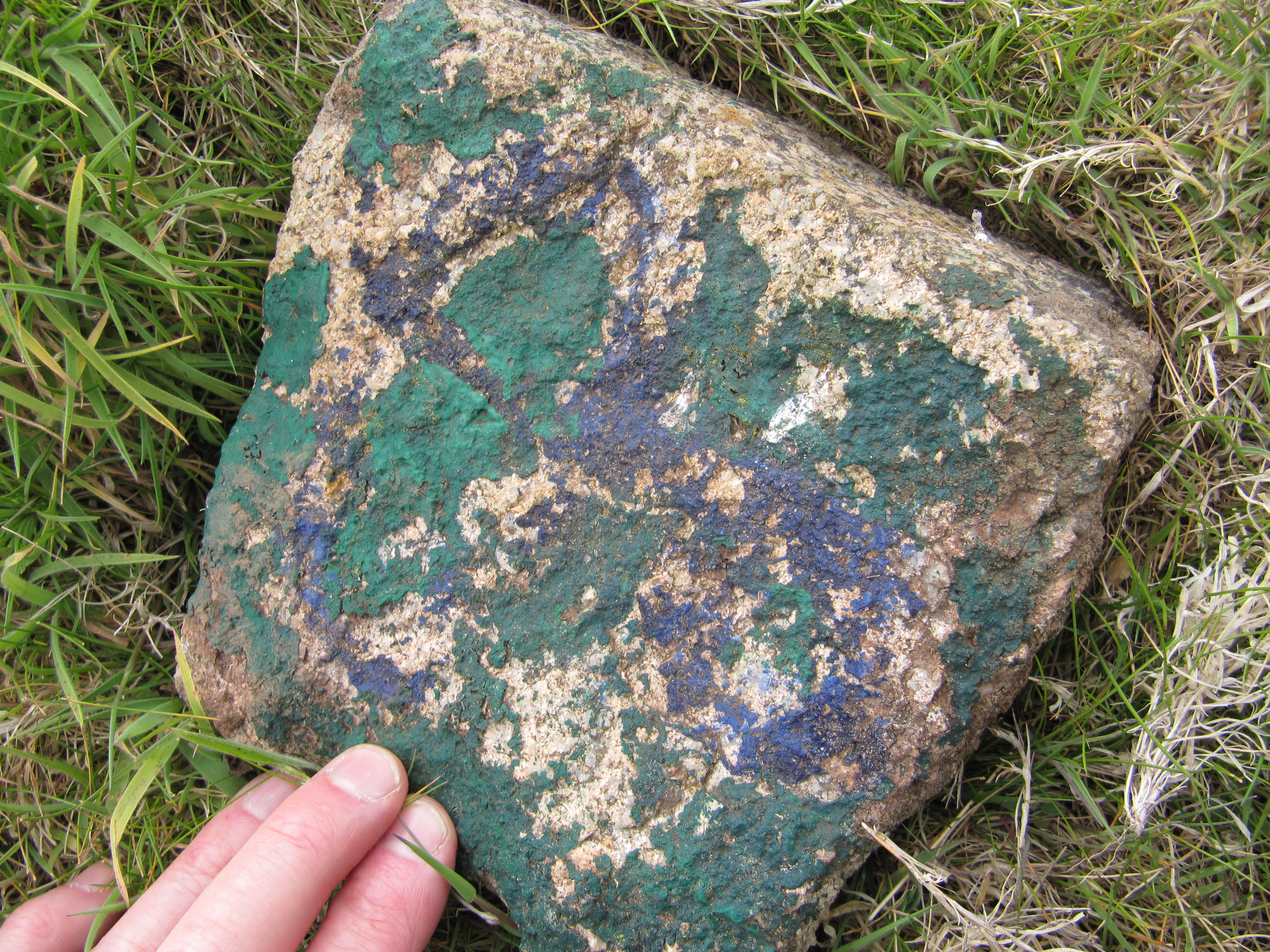 og steinprakt i matchende farger (azuritt- og malakitt-utfellinger, nær Geevor Tin Mine)
