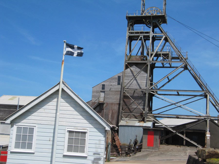 Cornwall Flag vaier over Geevor Tin Mine – besøksgruve