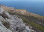 - utsikt bratt ned mot Port Hydra