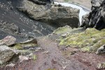 - styggbratt ned mot elva (Jökulsá a Fjöllum)
