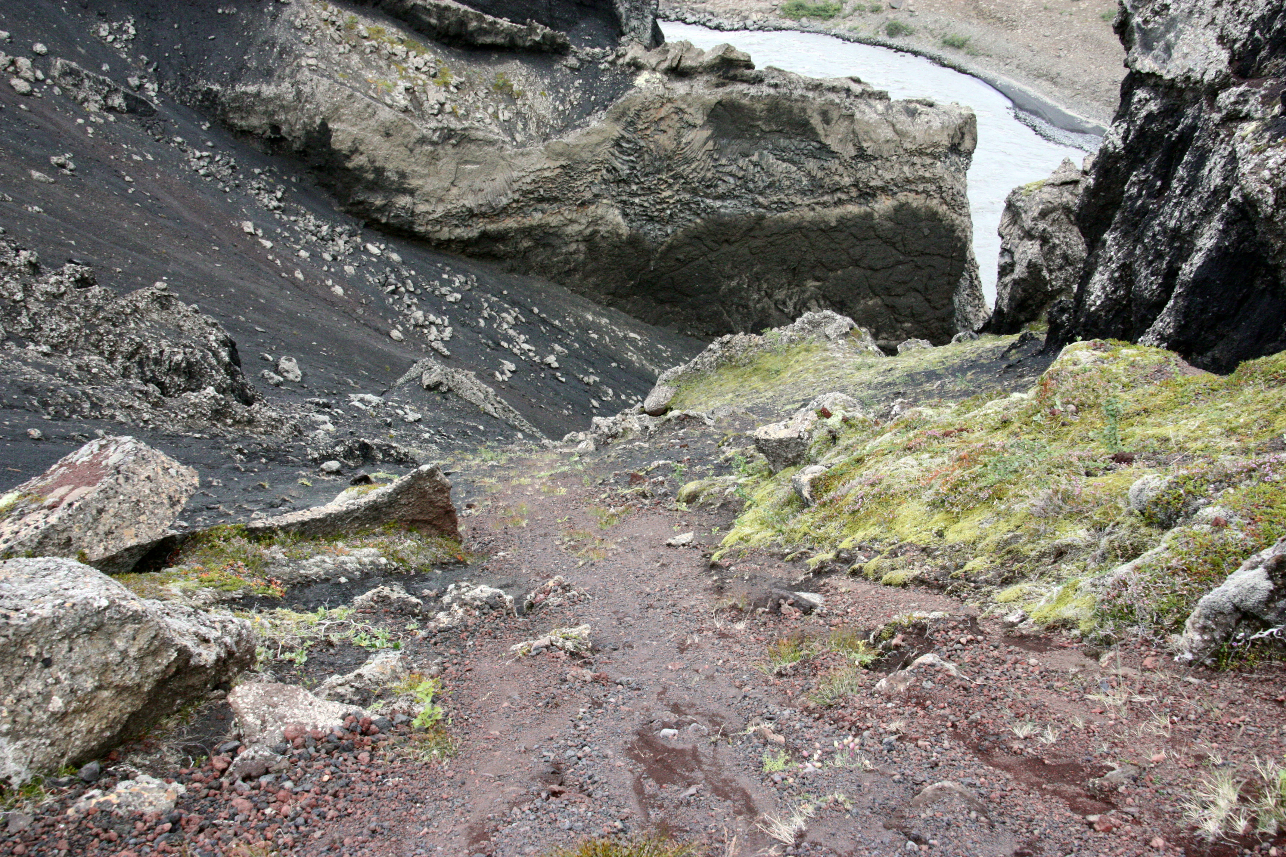 styggbratt ned mot elva (Jökulsá a Fjöllum)