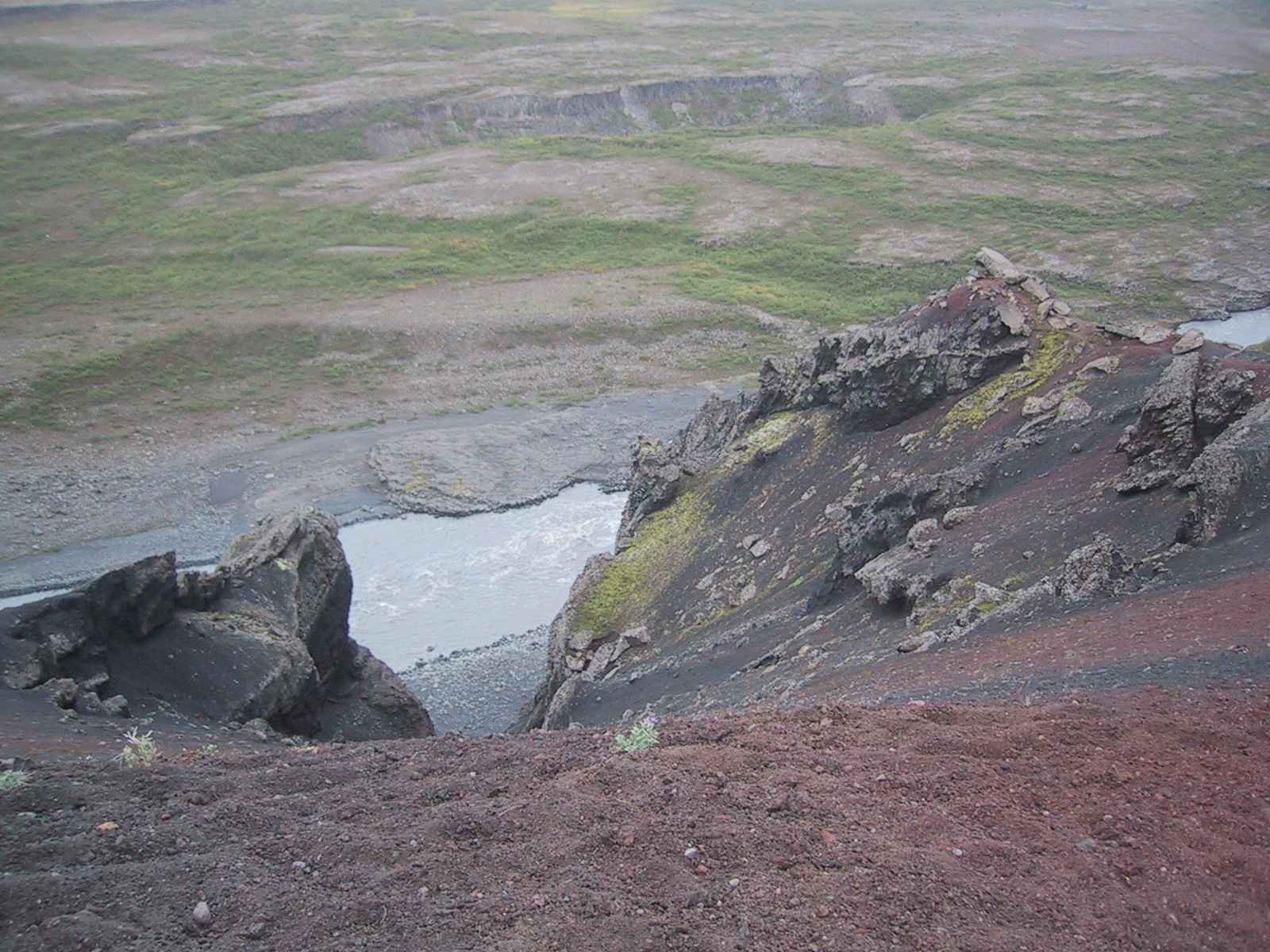parti fra Hljódaklettar: Rauðhólar, med Jökulsá á Fjöllum i bakgrunnen