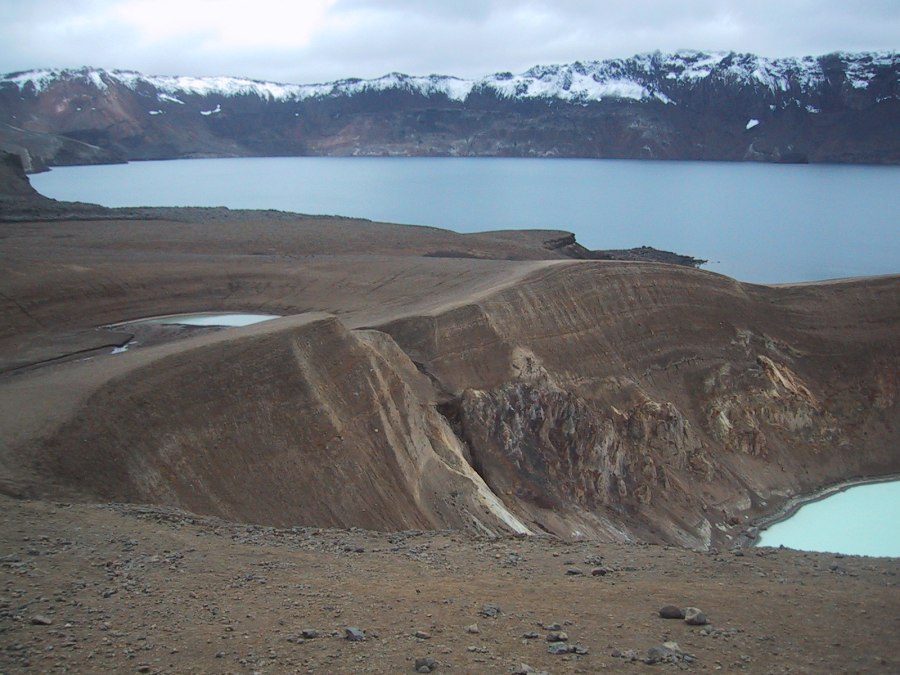 kjempekrateret i Askja, nå Øskuvatn – sidekrateret Viti til høyre