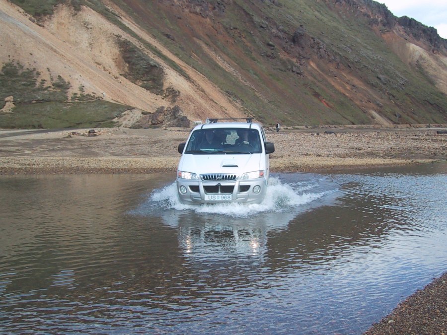 én av de mange ’broløse elvekrysninger’ på fjellveien til Landmannalaugar