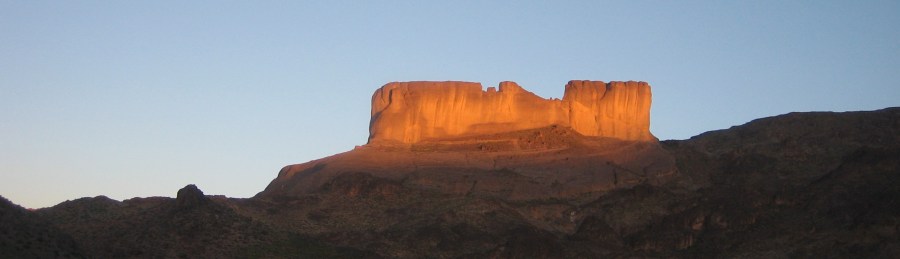 en annen mektig fjellformasjon, kalt ‘borgen’, sett fra oasen i Igli, fotografert tidlig i soloppgangen