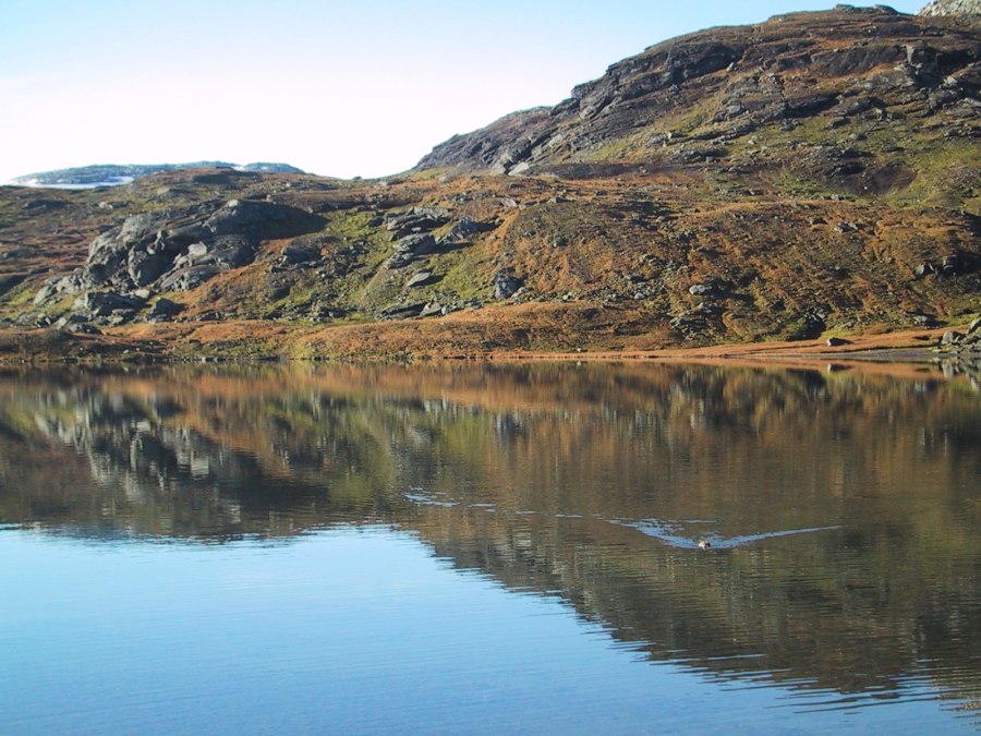 lemen på svømmetur i Nupsvatn