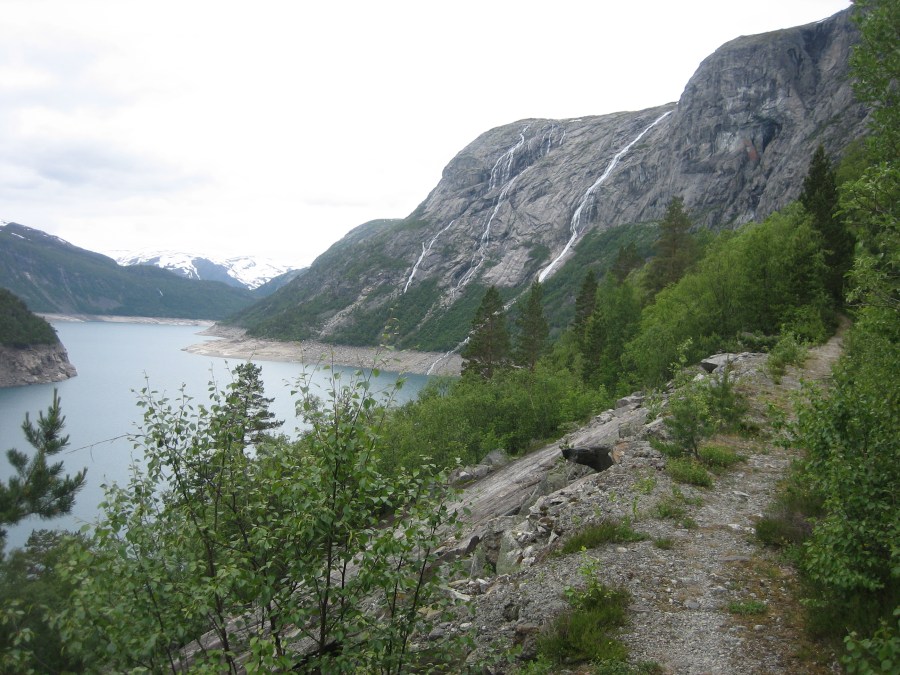 fra turstien: utsyn vestover, Folgefonna et sted i det fjerne