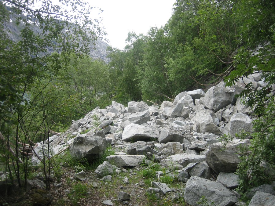 stien fylt av steinblokker (uten anatas?)