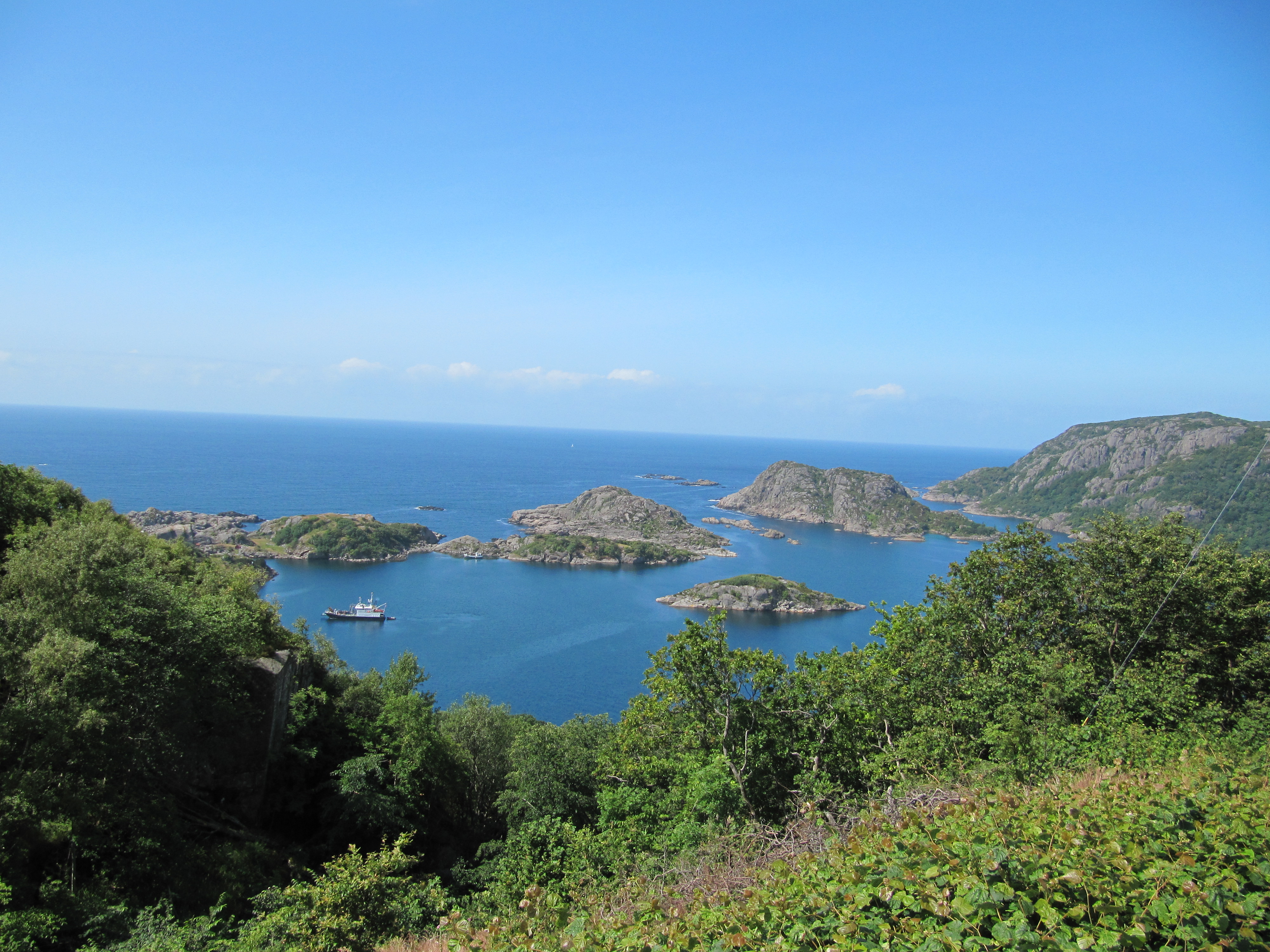 utsikten fra Hummeråsbakken, med Koløyna midt på bildet til høyre