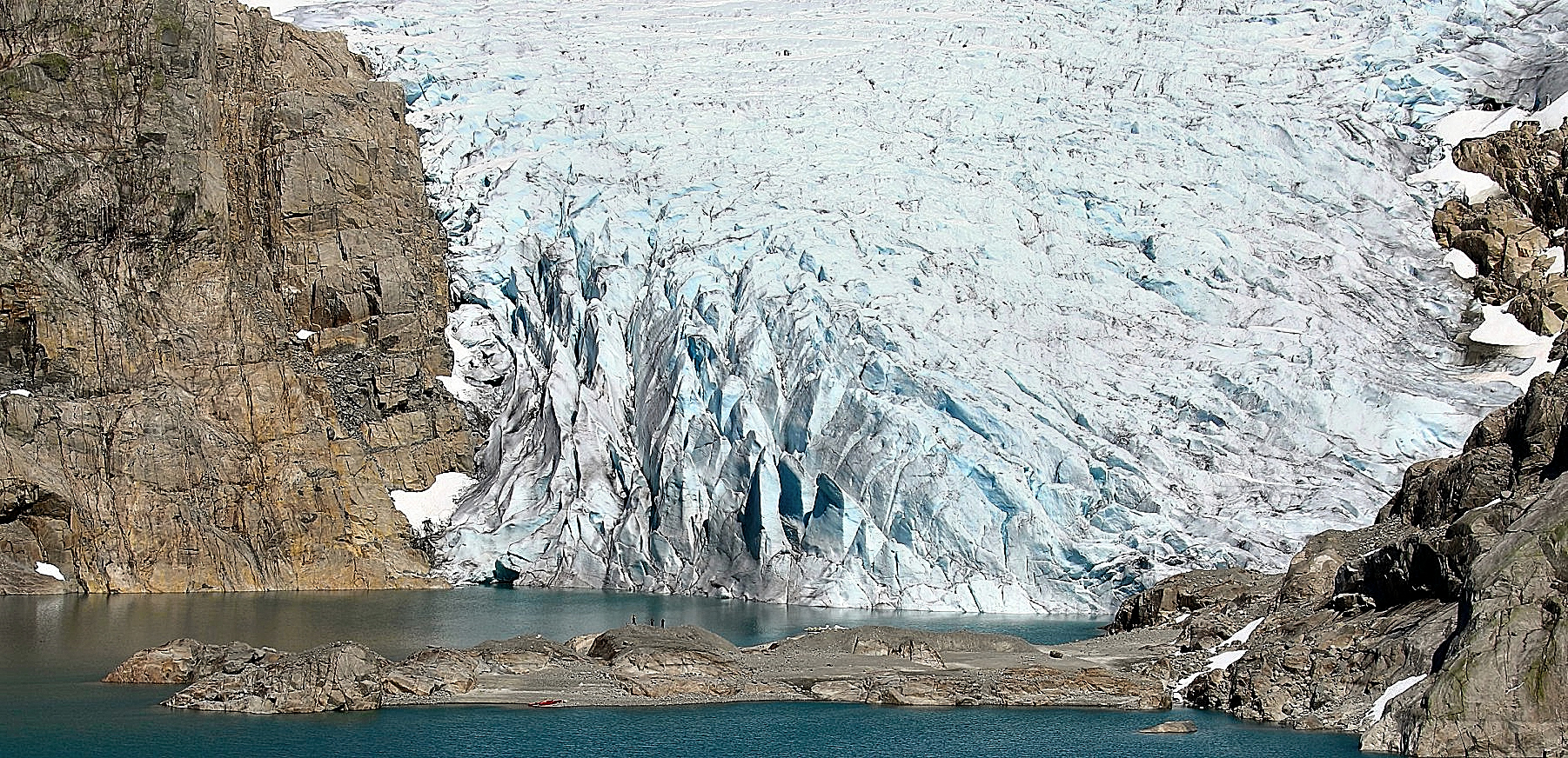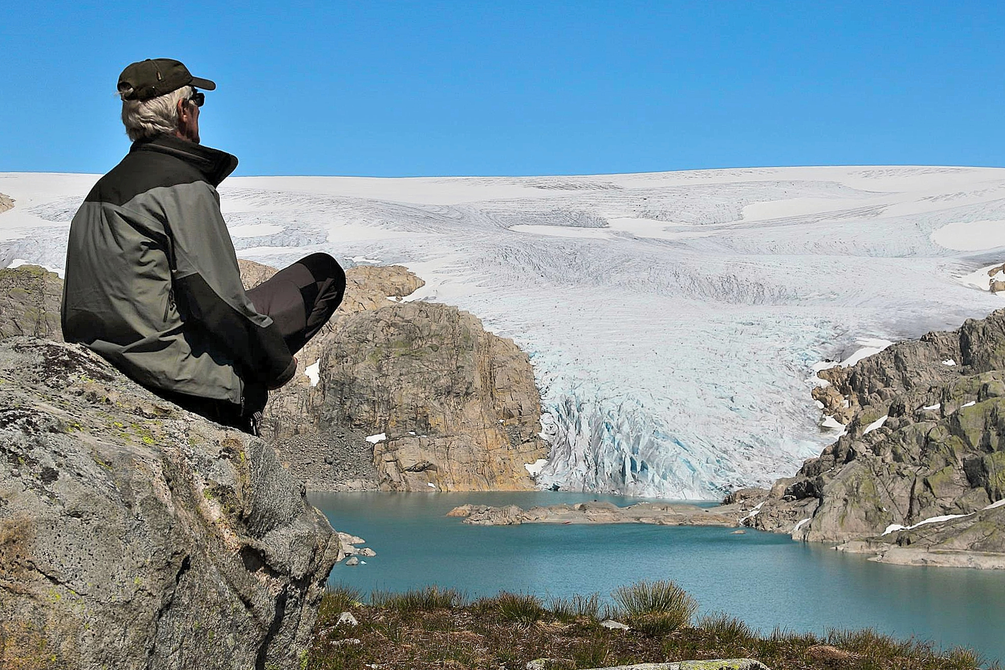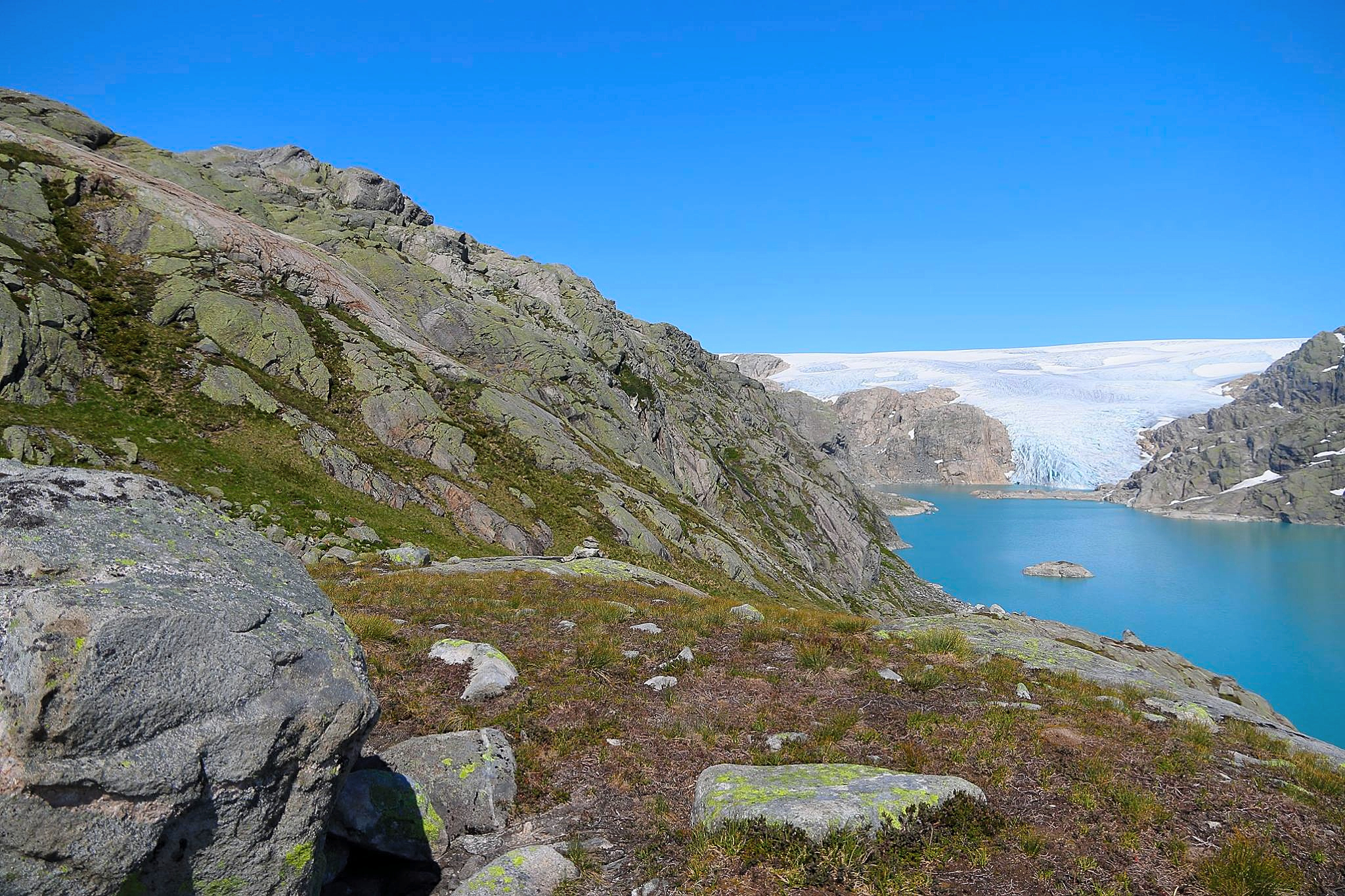 Bilder fra et par turer langs Insta Møsevatnet, på vestsiden i retning nordenden av vatnet. Her strekker Folgefonna seg like ned i vannet, og tidvis kalver brefronten der.