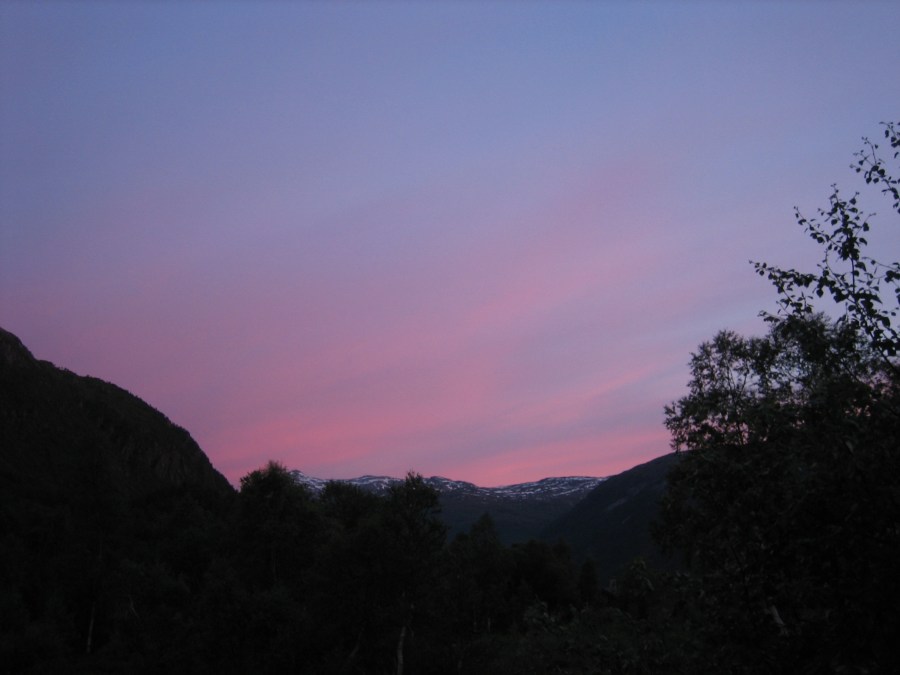 solnedgang sett fra terrassen på hytta