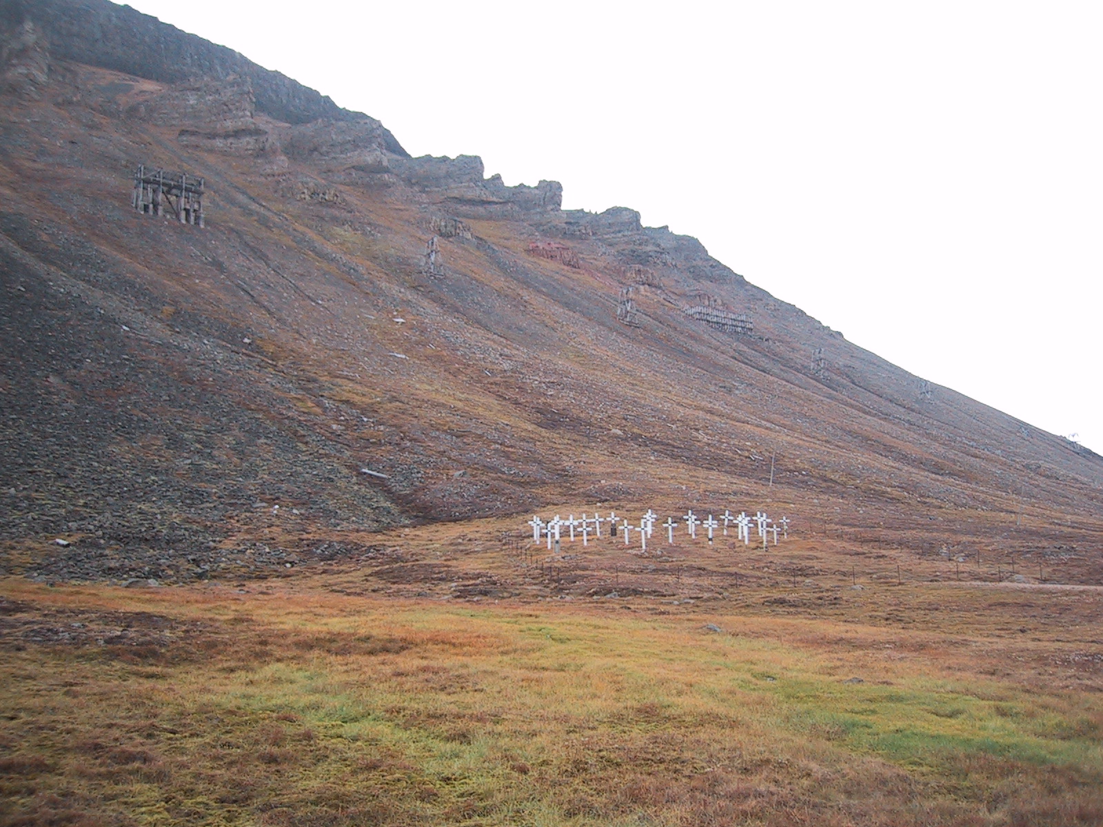 kirkegården i Longyeardalen (m/ bl.a. ofre for spanskesyken 1918)