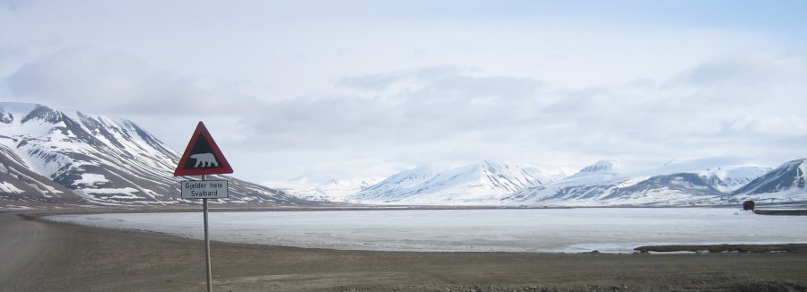 veiopplysning: fareskilt i Adventdalen