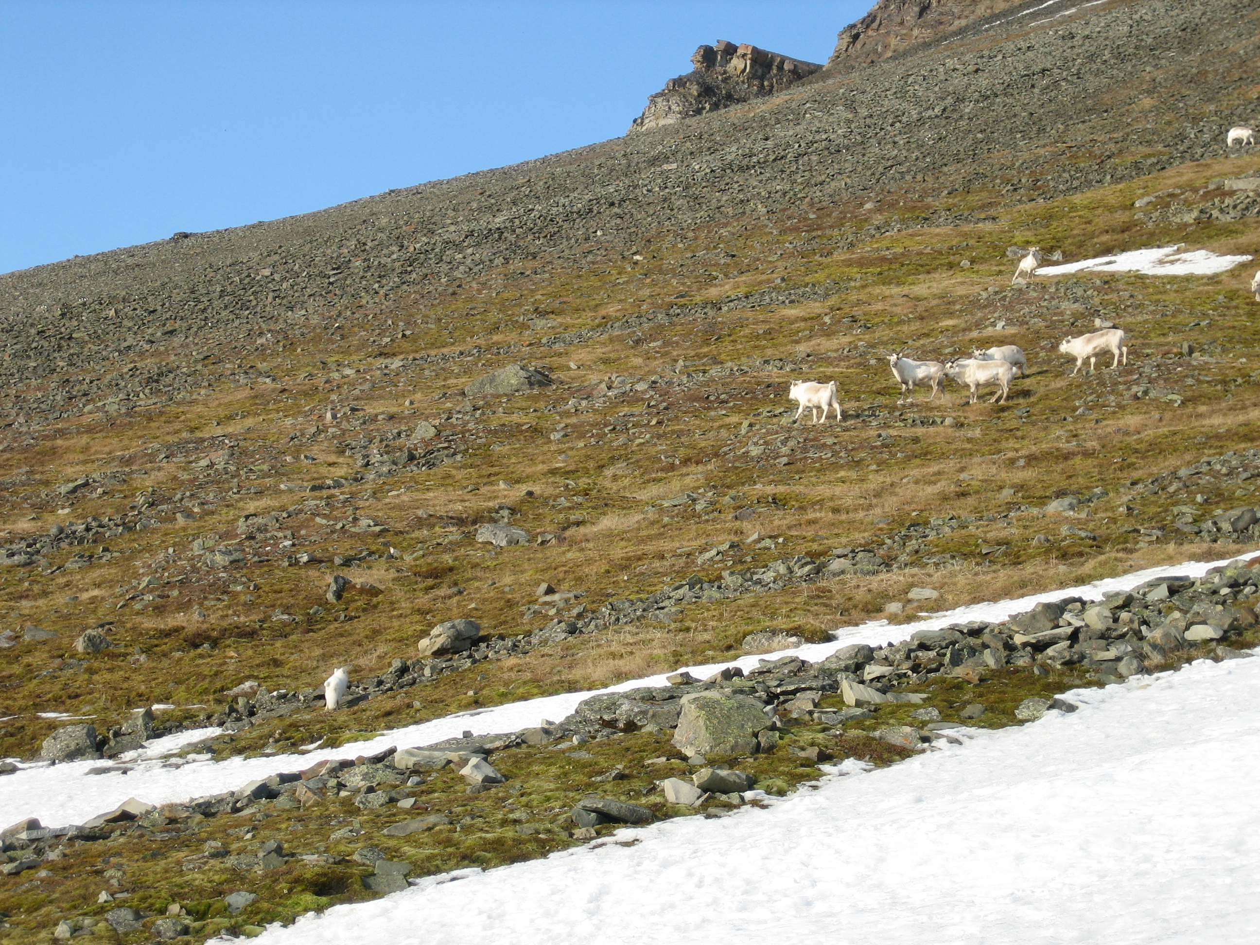 svalbardrein, og polarrev (t.v.) nær Bjørndalen