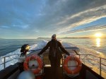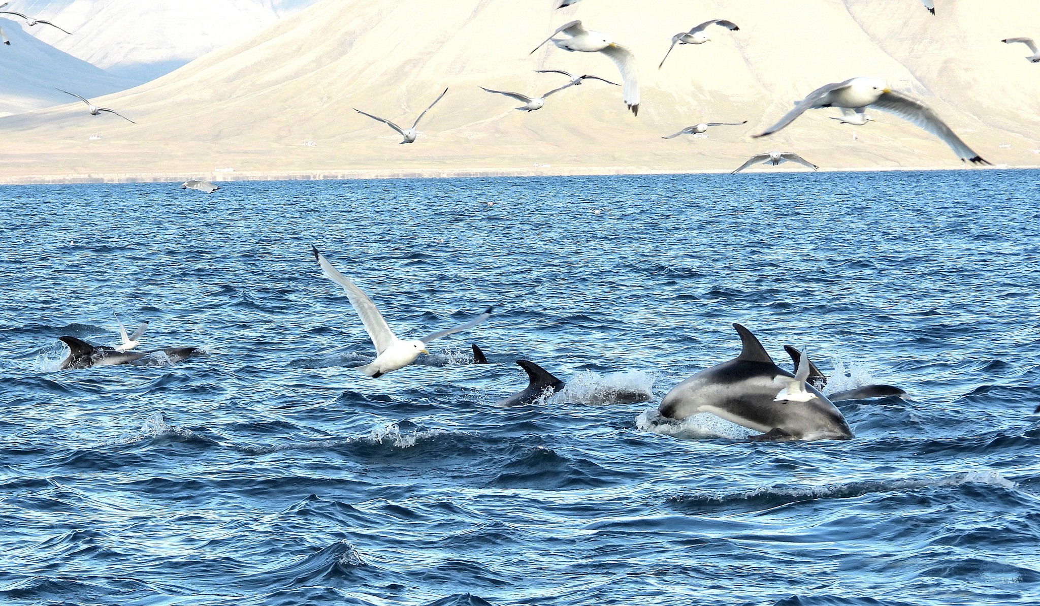 Denne gang en 5-timers kveldstur i RIB (innebygget) på Isfjorden – med fotojakt på det som måtte dukke opp (dvs finnhval, delfiner, og hvalross : )