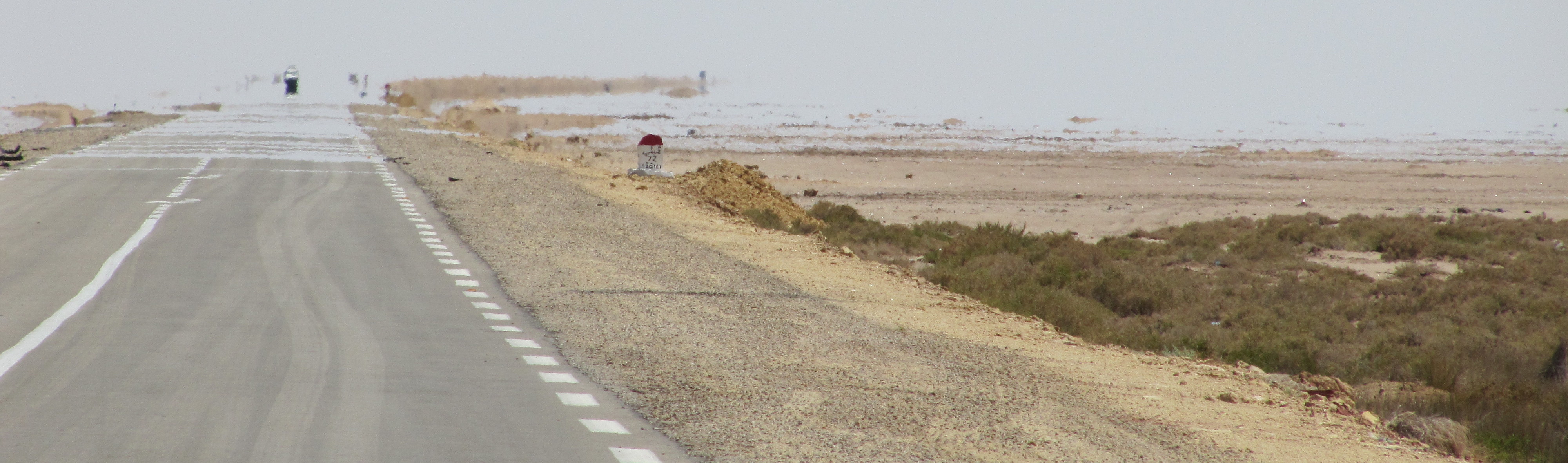 starten på veien over saltsjøen, Chott el Gharsa, 65 km snorrett vei