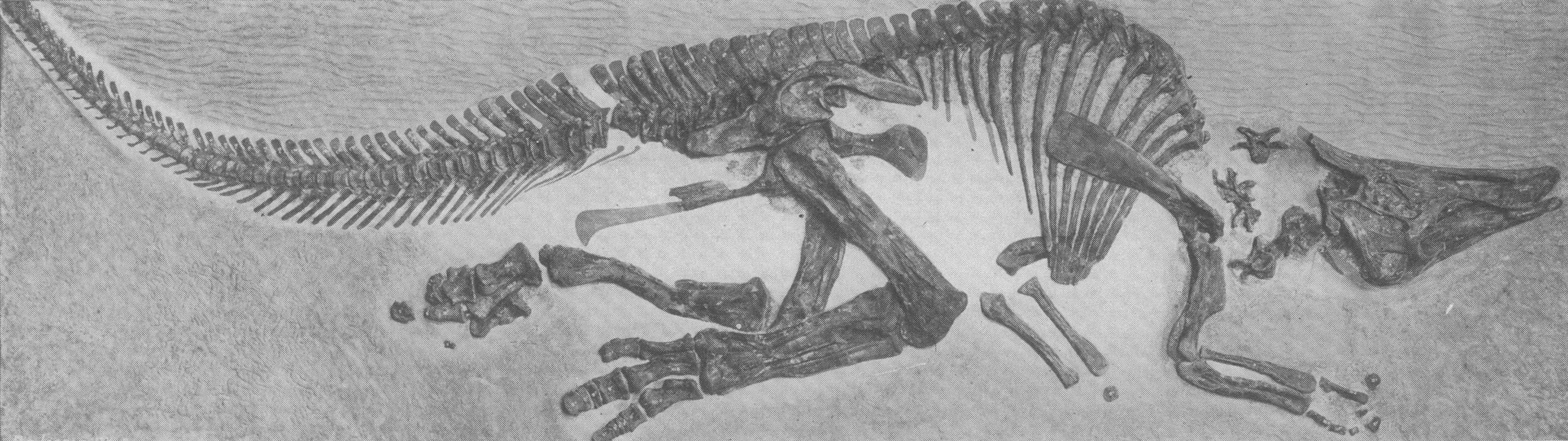 A photograph of the panel mount of the holotype of Saurolophus, from Barnum Brown, 1913.