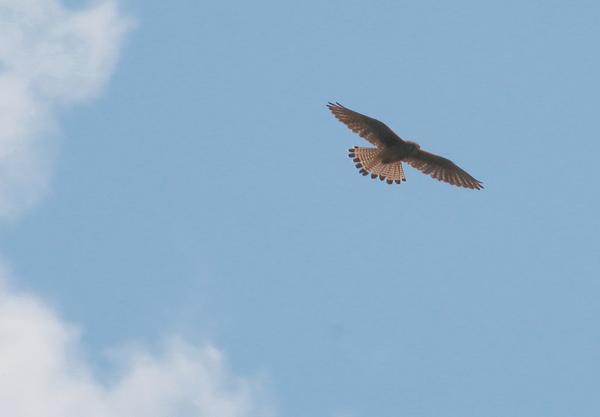 Gåsegribb forstyrret av tårnfalk, legg merke til størrelsesforskjellen